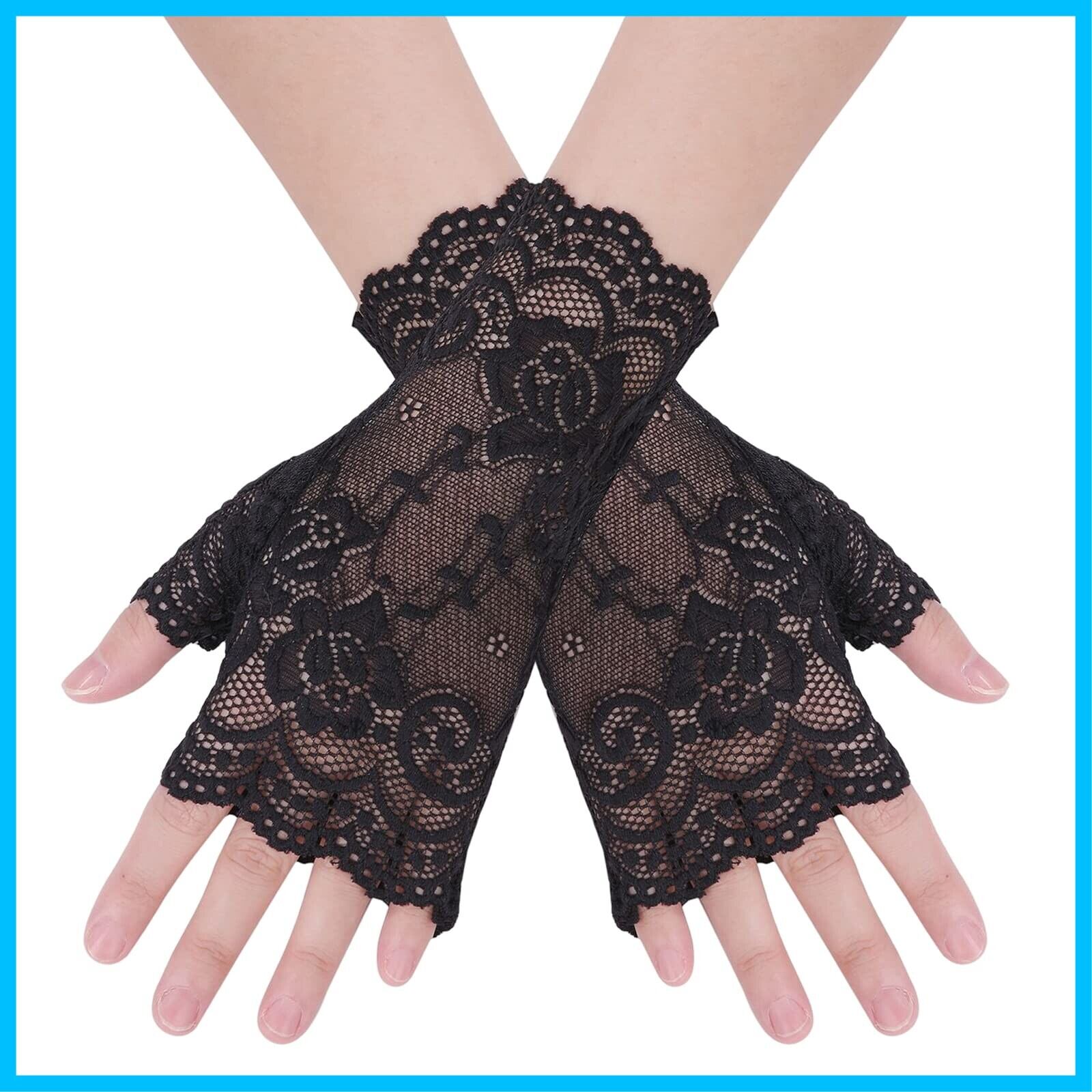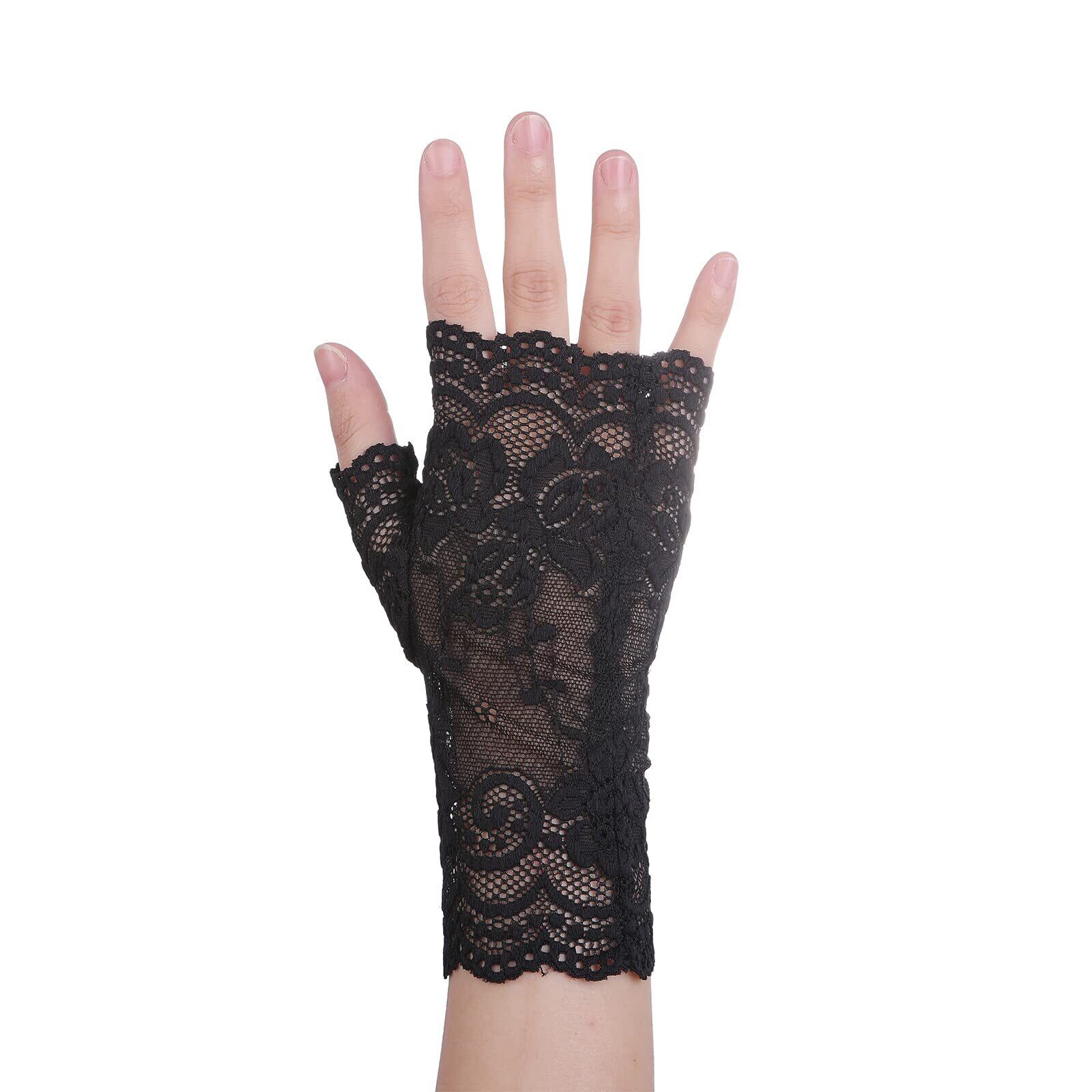 CCINEE グローブ UVカット手袋 レディース レース ショート 滑り止め 紫外線対策 日焼け止め ウエディング アウトドア ドライビング用 春夏 (指切2 ブラック)