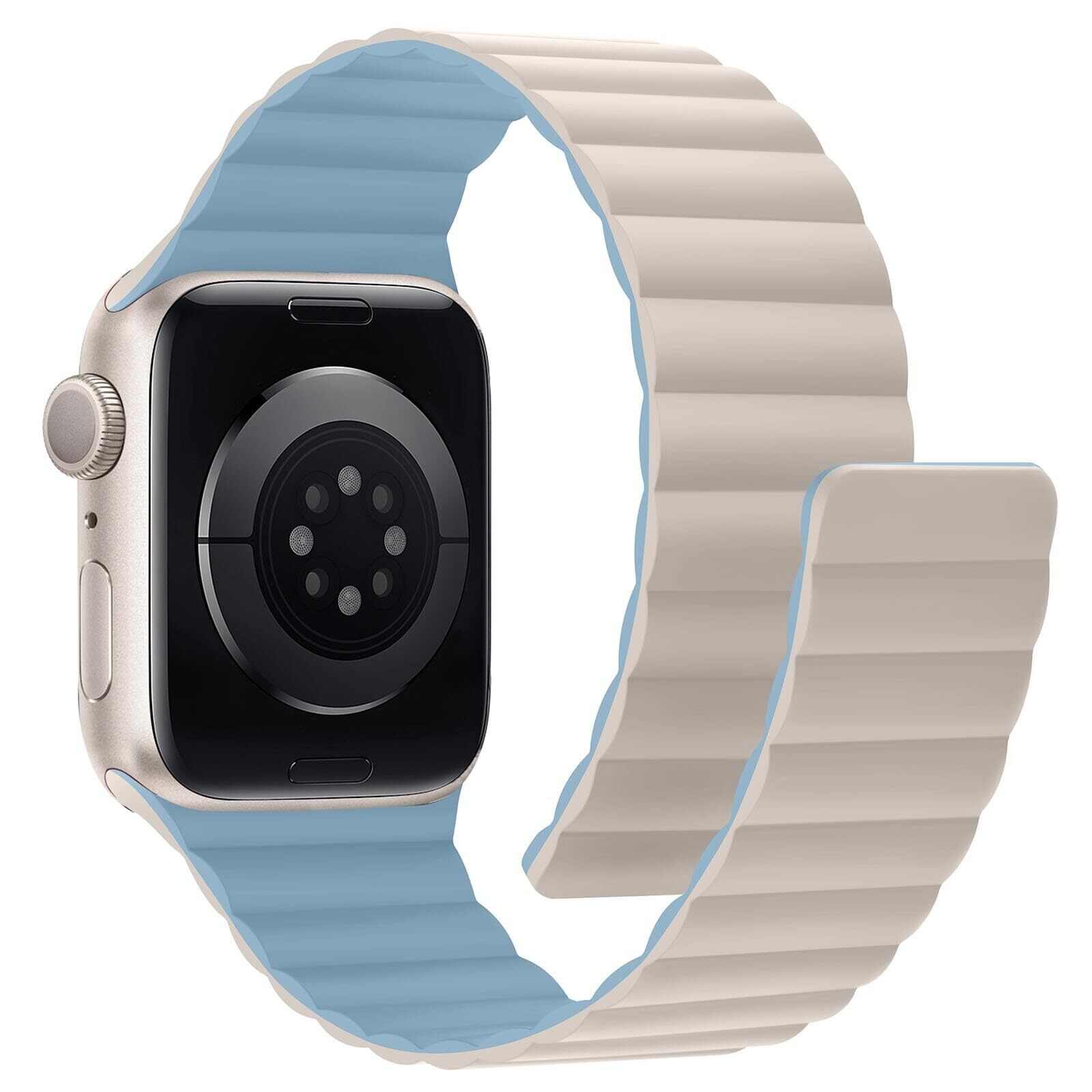 [HITZEE] マグネットBand コンパチブル Apple Watch バンド 49mm 46mm 45mm 44mm 42mm 41mm 40mm 38mm ソフトシリコン磁気 スポーツバンド Apple Watch Ultra 2 Ultra シリーズ 10 9 8 7 SE 6 5 4 3 2 1に対応(38mm/40mm/41mm/42mm,スターライト/ブルー)