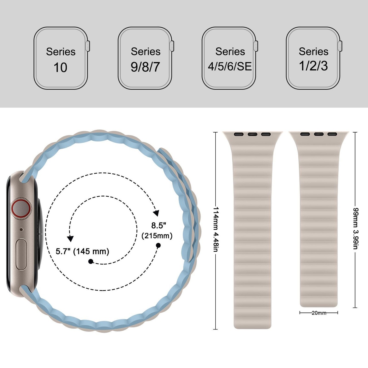対応機種とサイズ: HITZEE 柔らかいシリコン磁気交換バンド は Apple Watch バンド42mm 41mm 40mm 38mm に対応 すべてのモデル、 を含む:SE(2022) / SE(2020) /シリーズ10 /シリーズ9 /シリーズ8 /シリーズ7 /シリーズ6 /シリーズ5 /シリーズ4 /シリーズ3 /シリーズ2 /シリーズ1。 (注: watchは含まれていません)。5.7インチから8.5インチ(145mm-215mm)の手首に適しています