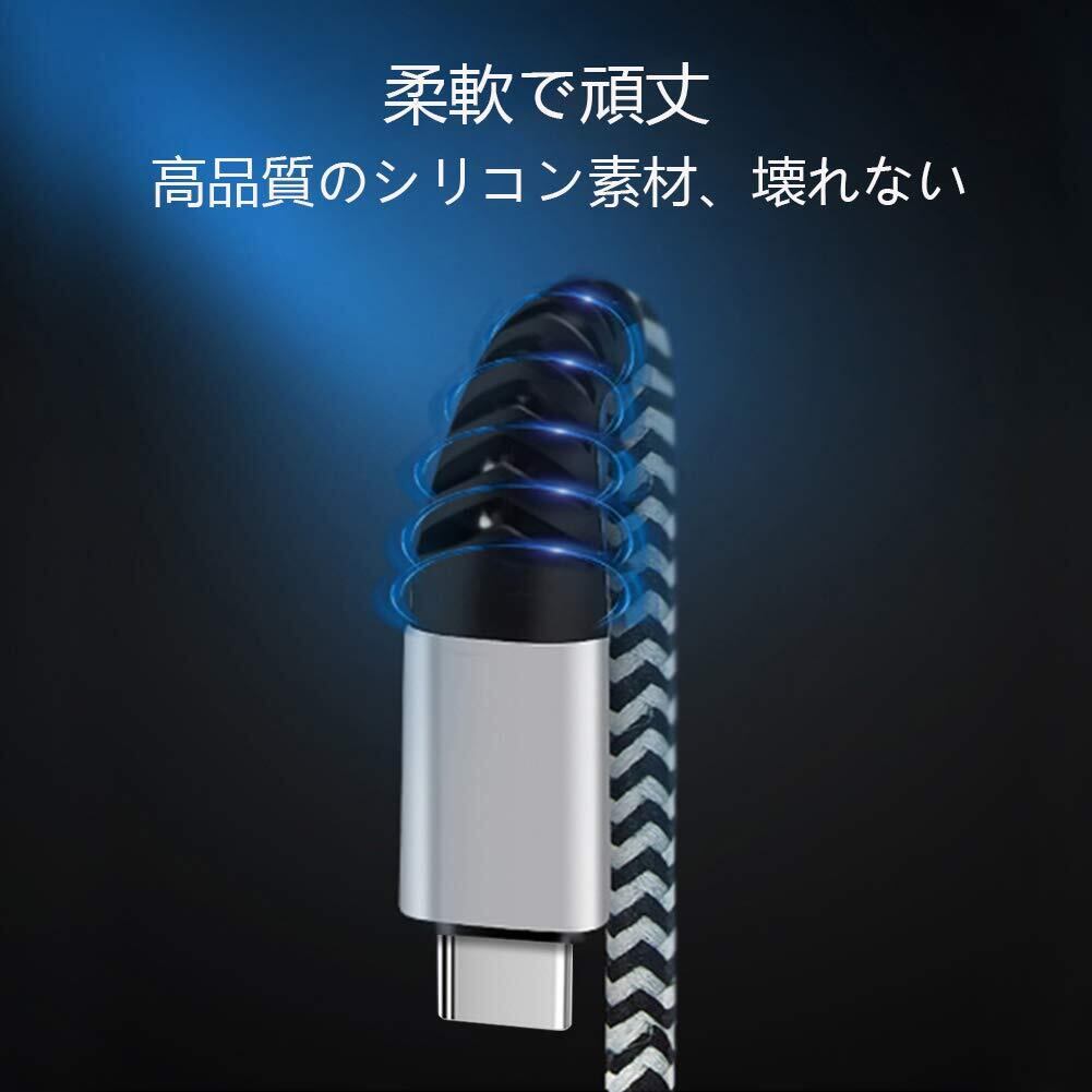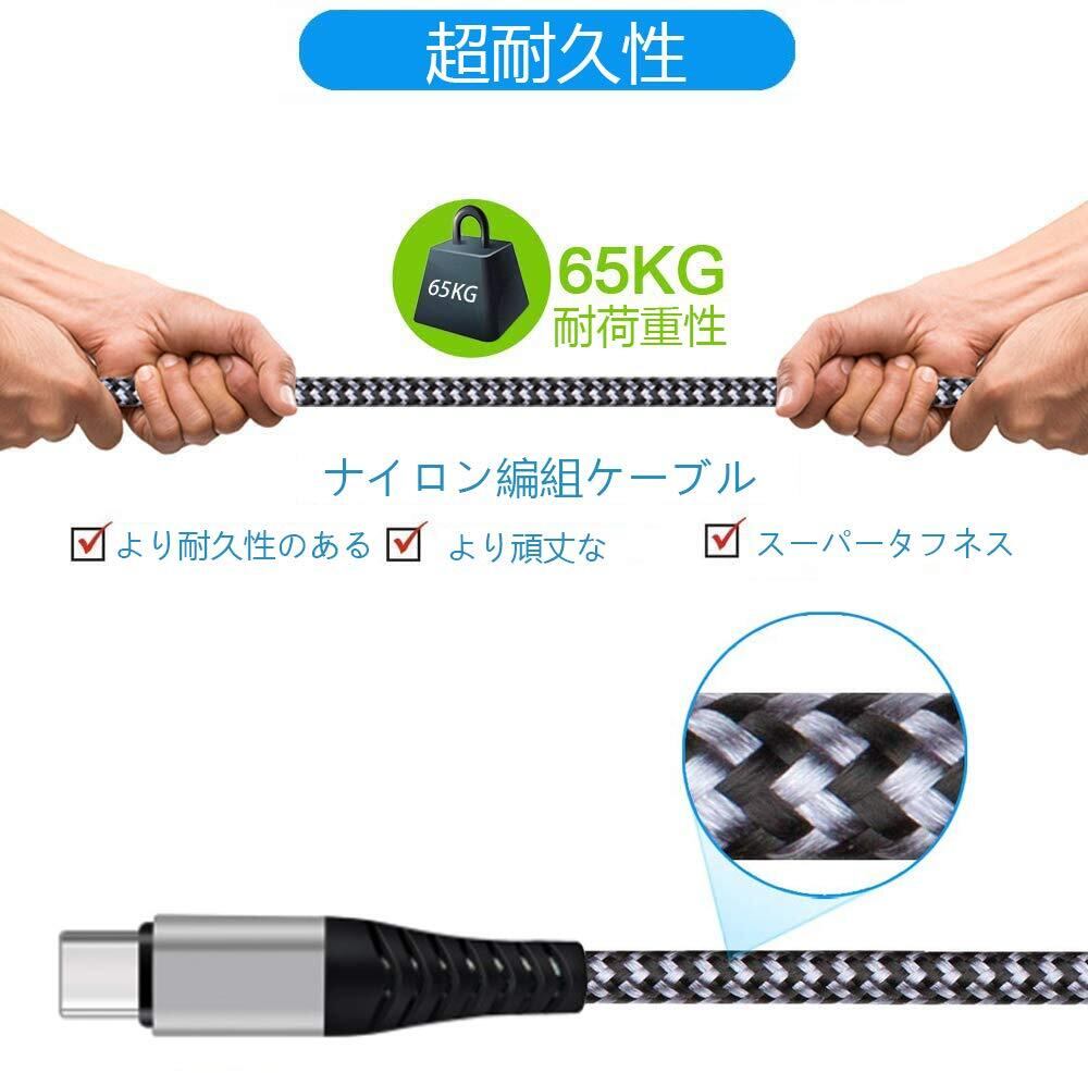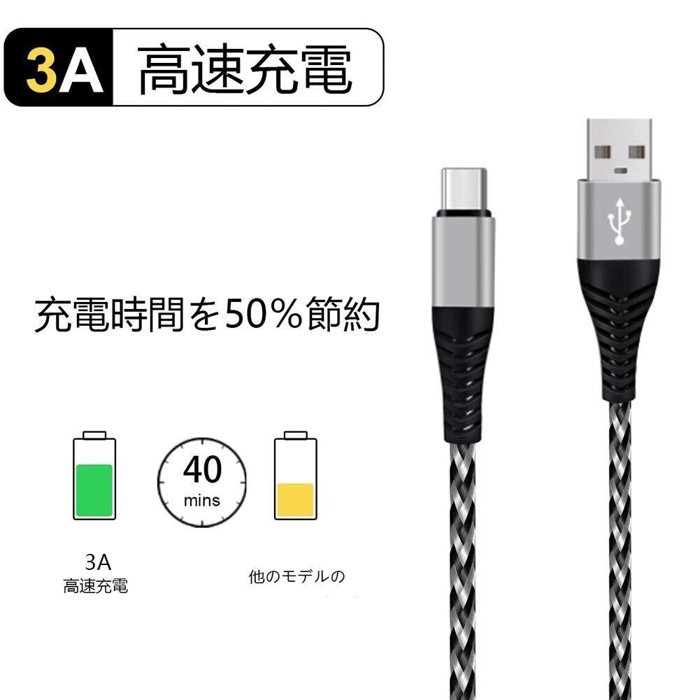 USB Type C ケーブル 3A 急速充電 【3本セット 2m×3】 USB スマホ タイプC 高耐久 高速データ転送対応 ナイロン編み 断線防止 柔軟性あり iPhone 16/15 充電ケーブル Sony Xperia/Samsung/Asus Zenfone/Fujitsu Arrows/PS5 USB-A to USB-C 各種対応 (黒)
