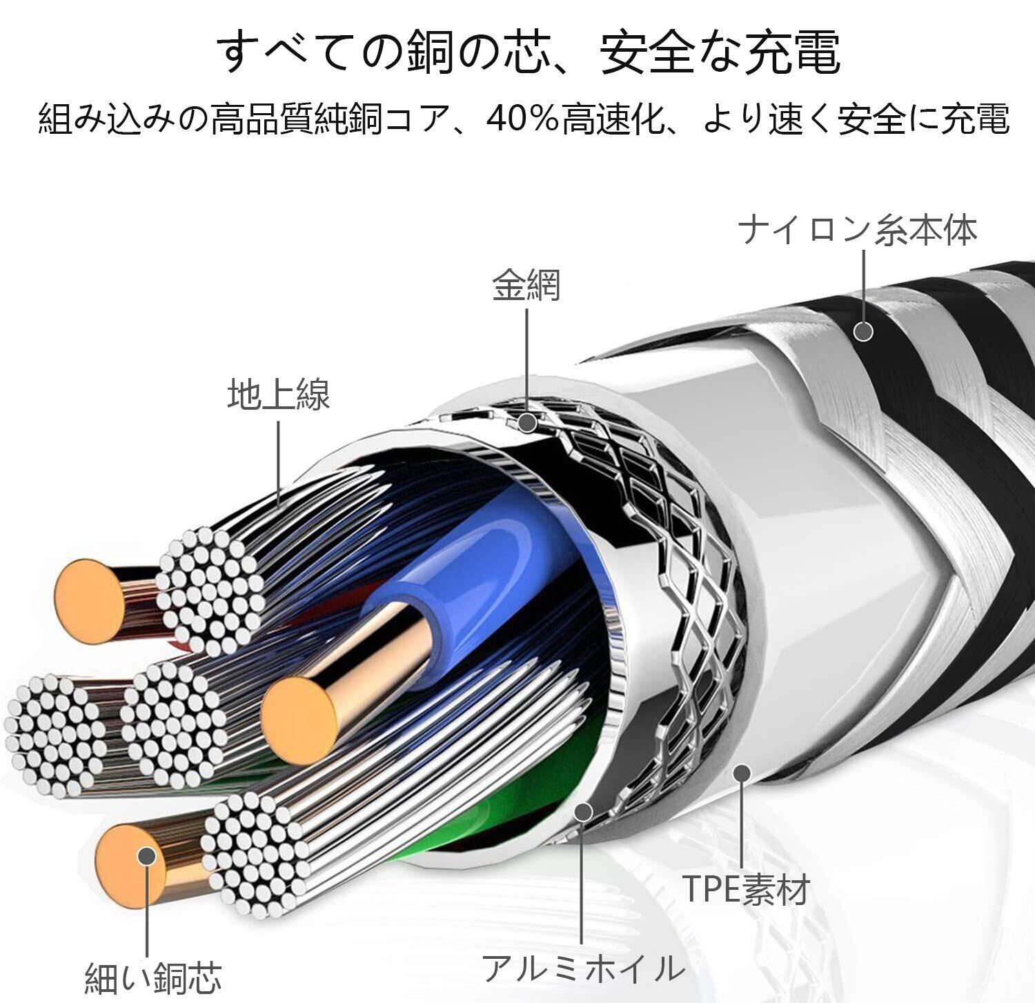 ️【3A安全な急速充電と高速データ伝送】:当社のワイヤーコアは、電流損失を低減するために太いワイヤーコアを使用しており、最大5V/3Aの急速充電をサポートしています。安全な充電とデータ転送もサポートする。充電速度は他のケーブルより40%速く、貴重な時間を大幅に節約し、高効率かつ高品質の充電とデータ転送を保証します。※5V/3Aになるには、急速充電アダプタが必要です。