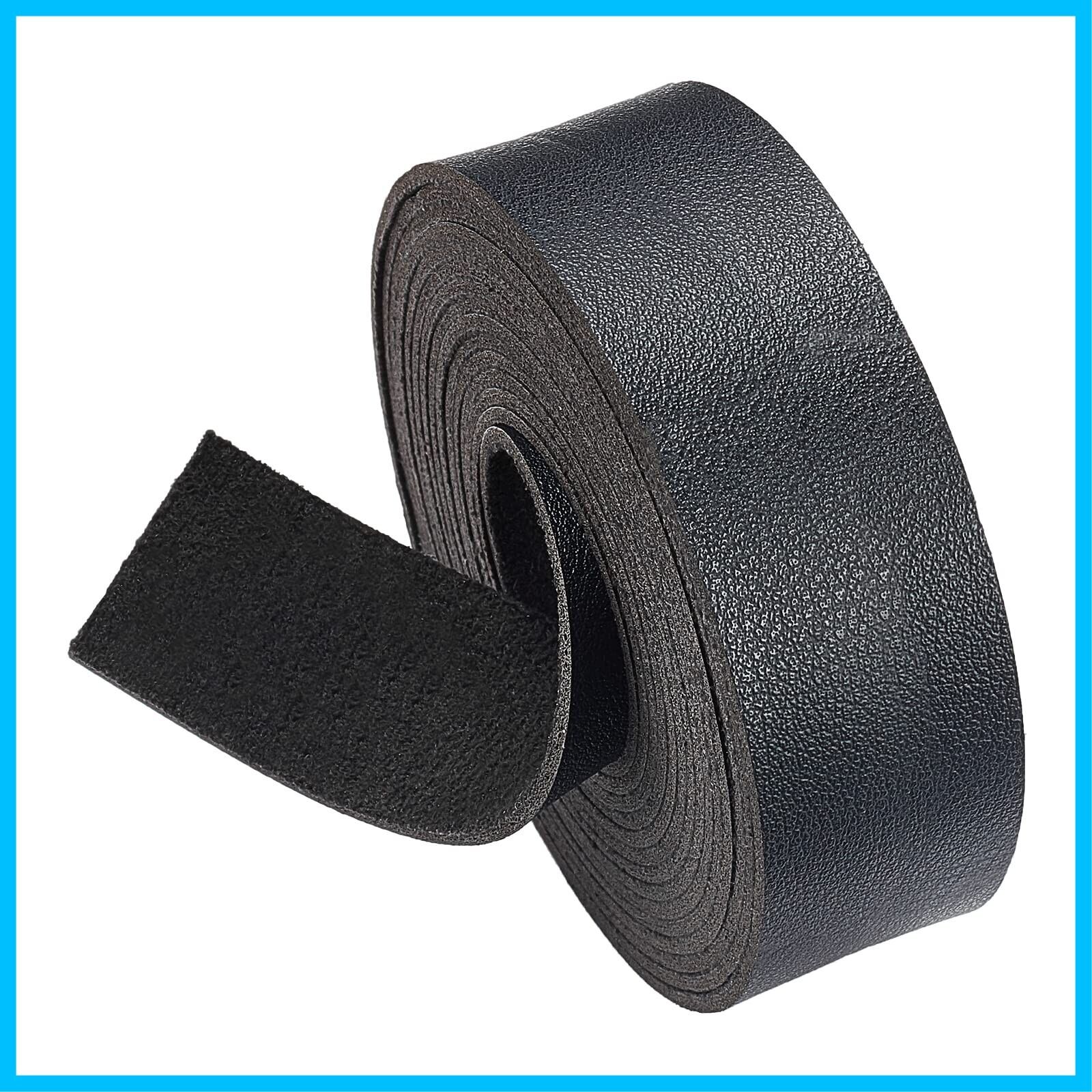 BENECREAT 2.5mx25mm レザーテープ ロール ライチ模様 片面レザー 合皮 生地 厚さ1.8mm 柔らかい バッグ 革小物作り 持ち手 テープ 張り替え フェイクレザー 手芸材料 (黒色)