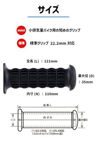 キジマ(Kijima) バイクパーツ グリップ クラシックミニ ラバー製 121mm φ22.2mm 非貫通タイプ 汎用 ブラック 201-4901