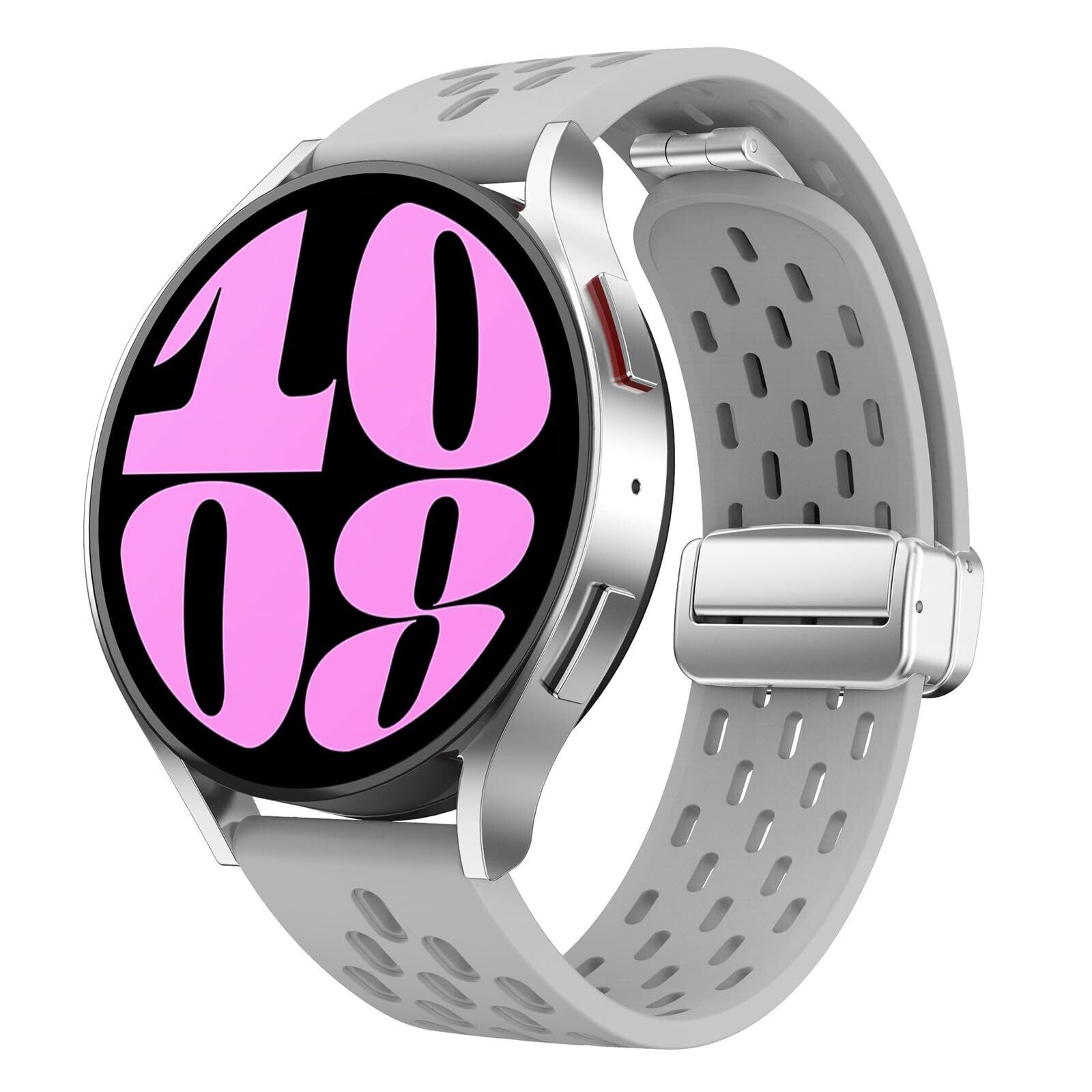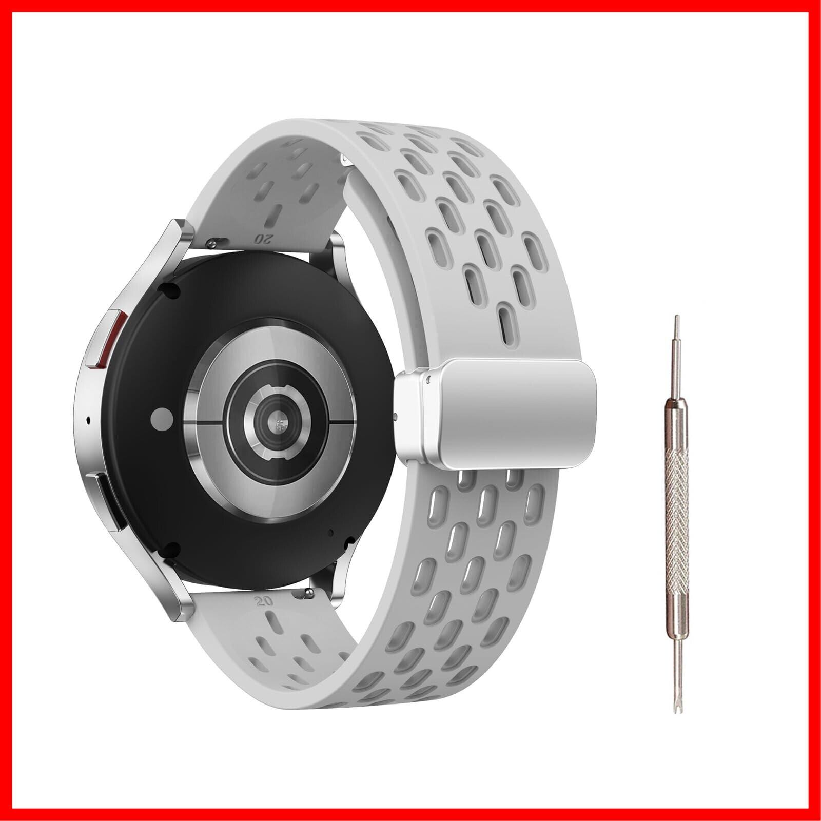 [Jumpsunfun] 時計バンド 22mm ラバー腕時計ベルト マグネットシリコンバンド スマートウォッチ替えベルト ライトグレー/シルバーバックル