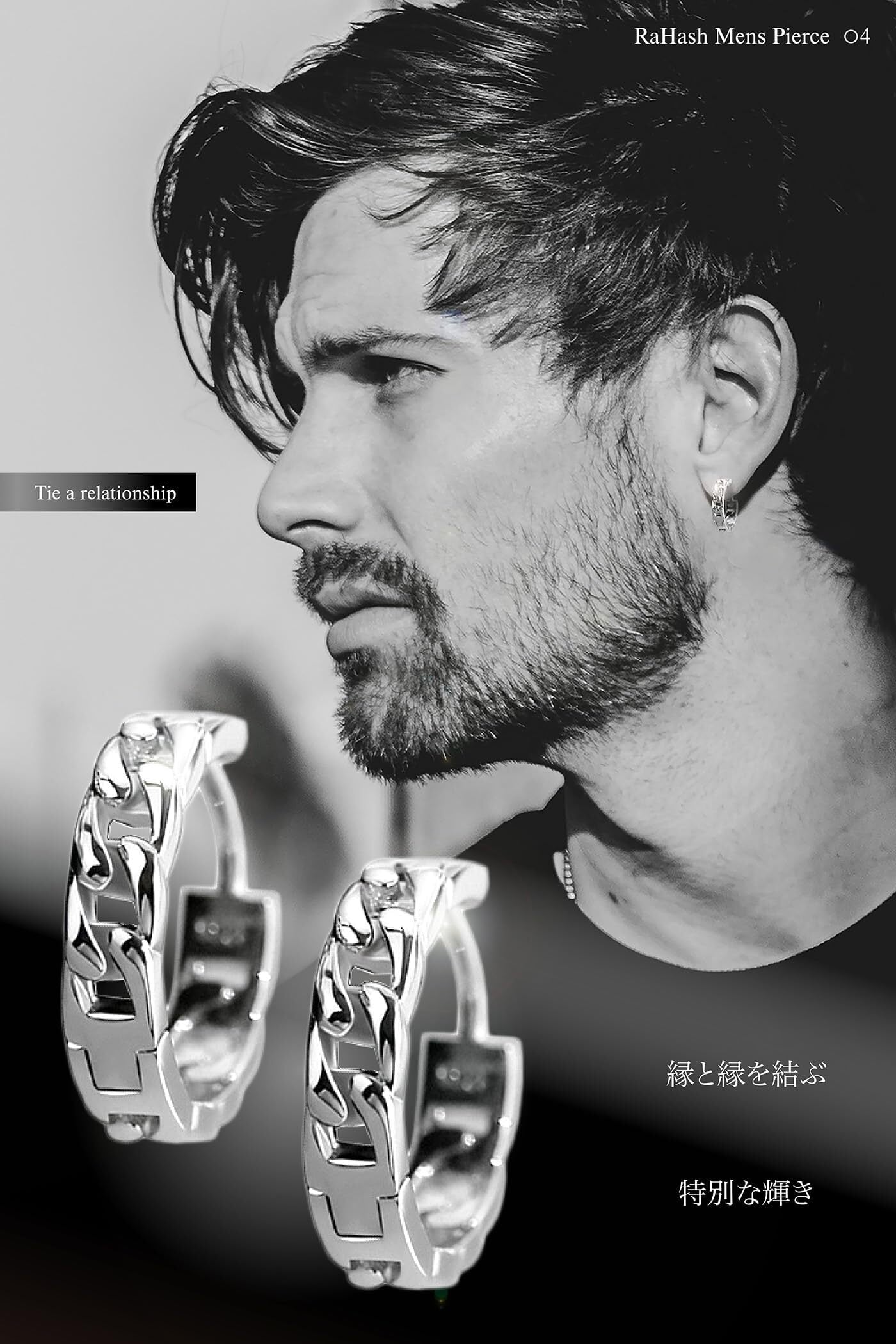 [RaHash] ピアス メンズ リング ブランド シンプル フープ 喜平 シルバー 925 両耳 セット 金属アレルギー対応 (外径14.5mm)