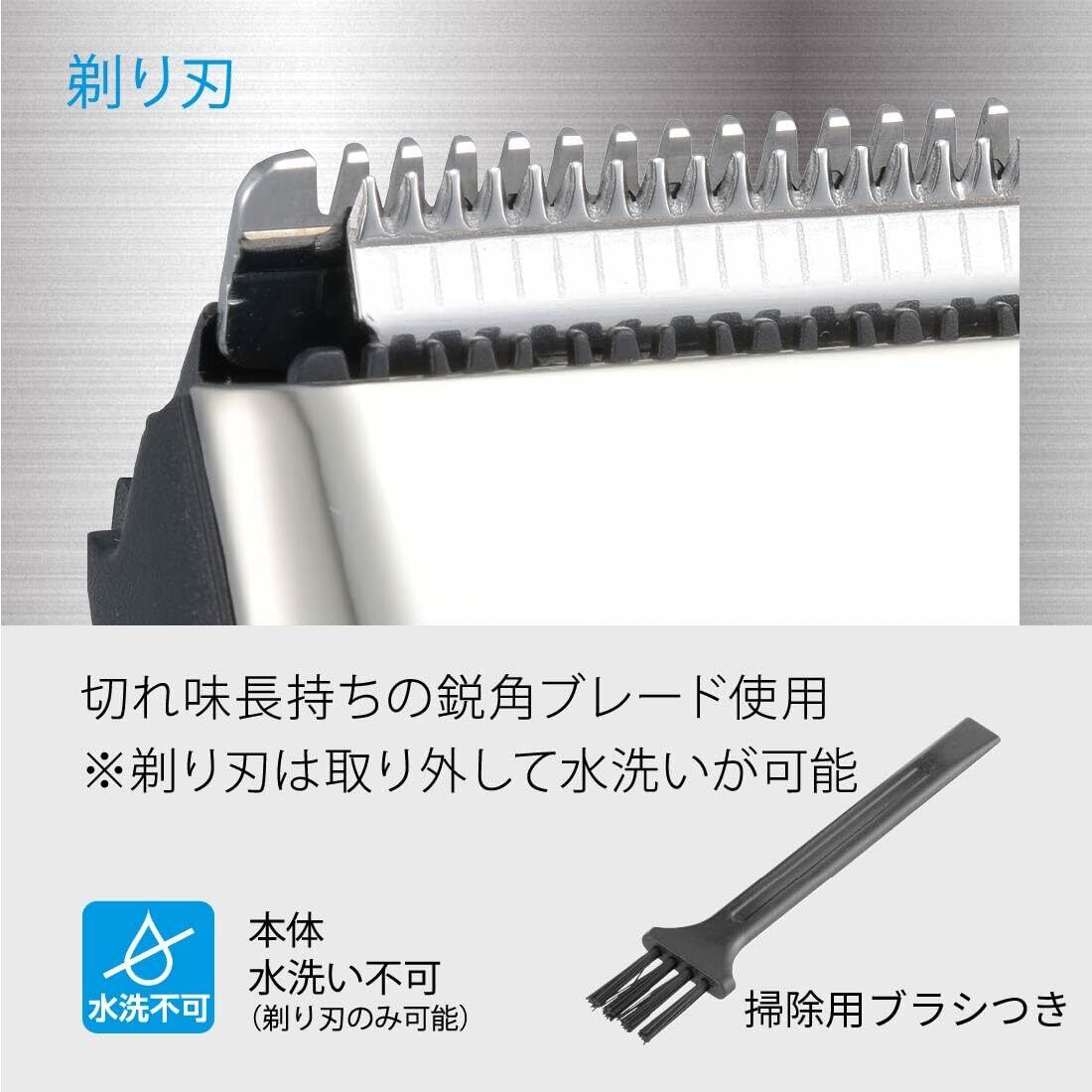 ◆外形寸法:幅48×高さ179×奥行41mm(本体のみ) ◆質量:約124g(本体のみ) ◆付属品:短髪用コーム(本体取付済)、長髪用コーム、掃除用ブラシ、保証書付取扱説明書
