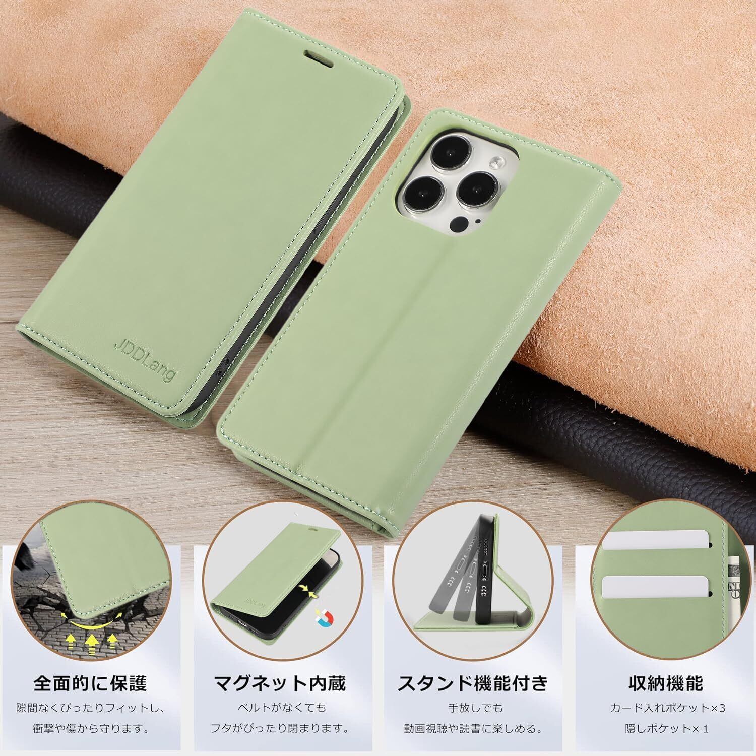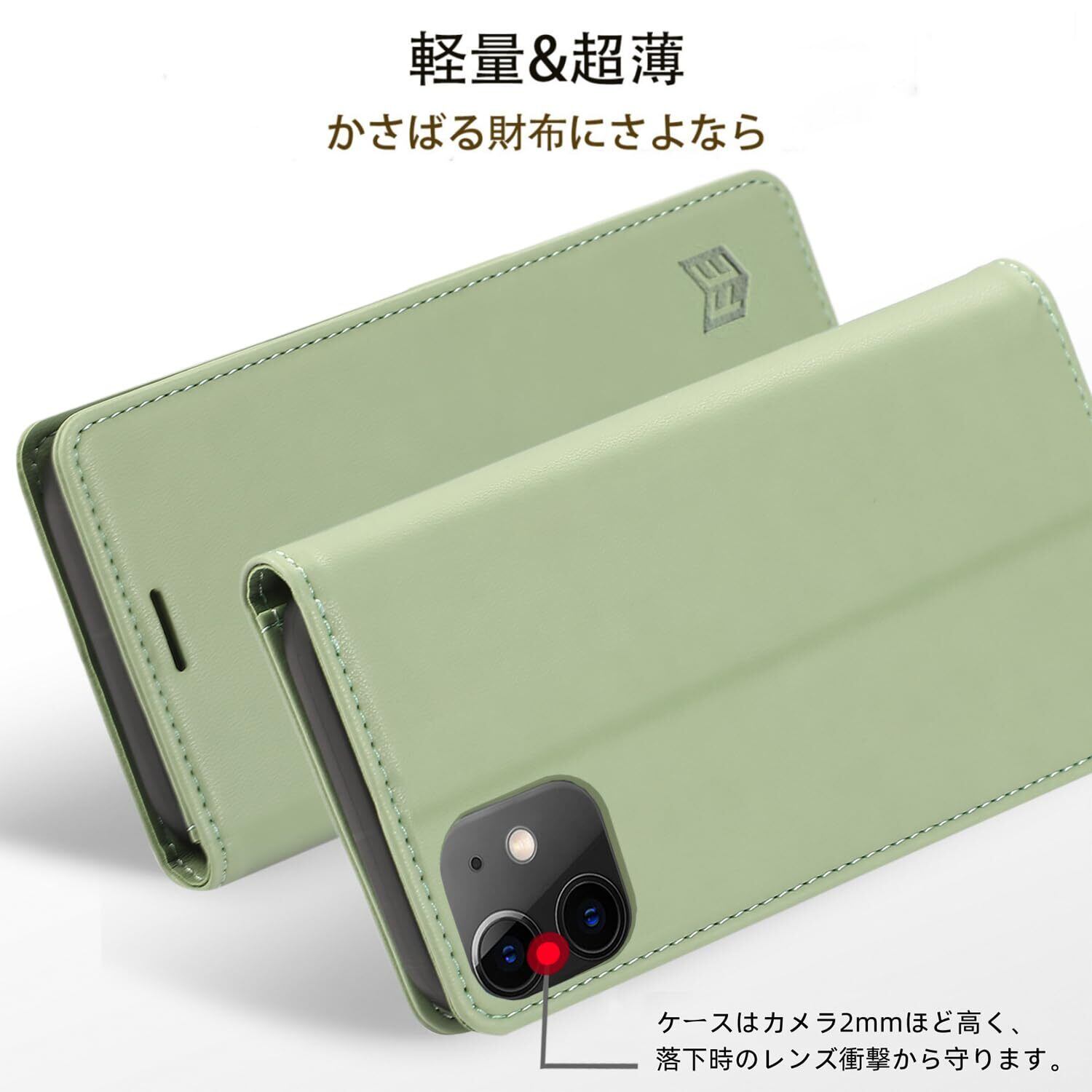 FeeY iphone11 ケース 手帳型 Iphone11 手帳ケース 耐衝撃TPU素材カード収納 マグネット内蔵スタンド機能付き アイフォン 11携帯カバー全面保護 iphone 11 スマホケース 6.1インチ対応, ライトグリーン
