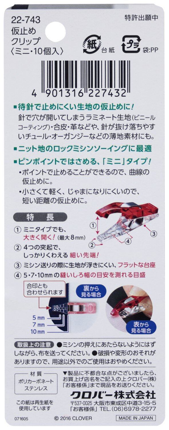 Clover ソーイング用品 仮止めクリップ ミニ 10個入り 22-743 ピンク