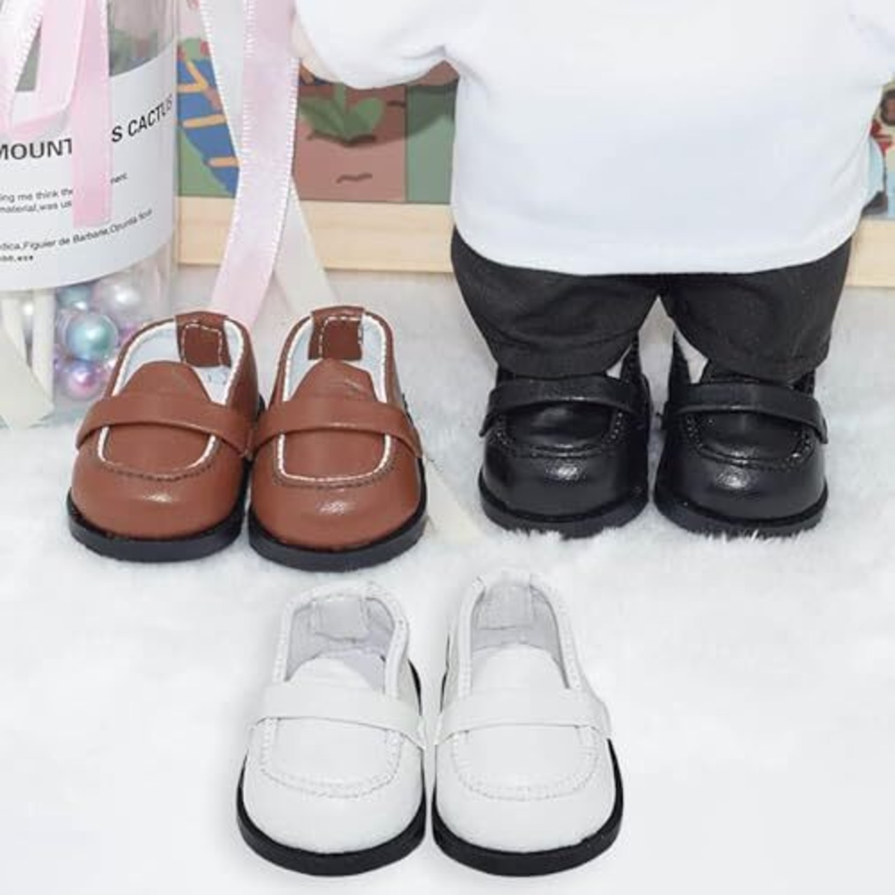 ぬいぐるみ用の革靴です。人形(ぬいぐるみ)は、靴を履いて立つことができます。