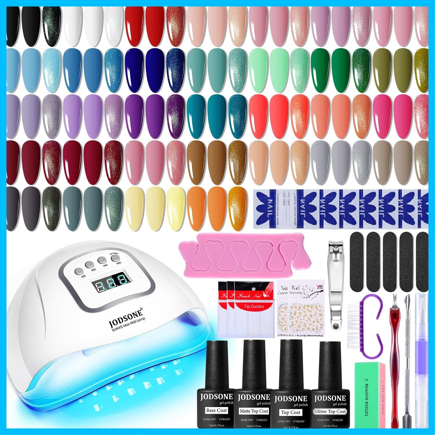 JODSONE 32色 鮮やかで高光沢のジェルネイルポリッシュキット、ベースコート、トップコート、LEDランプ付き32色ジェルセット、初心者に適したDIYマニキュアジェルネイルキット
