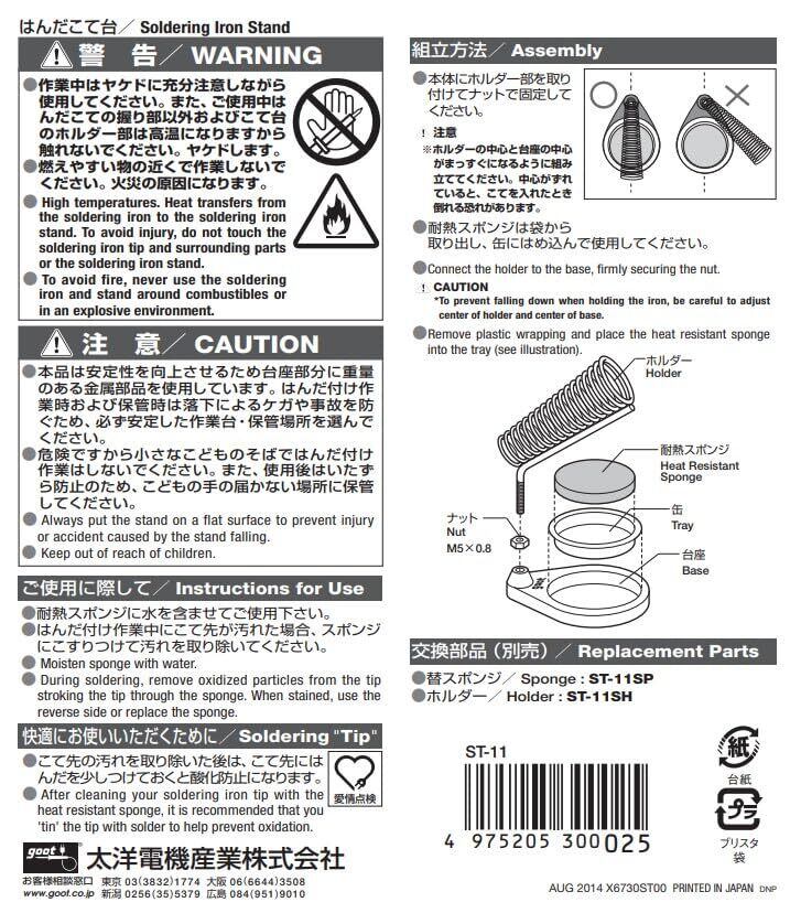 太洋電機産業(goot) はんだこて台 ニクロムヒーターはんだごて専用 スポンジ付き ST-11 日本製