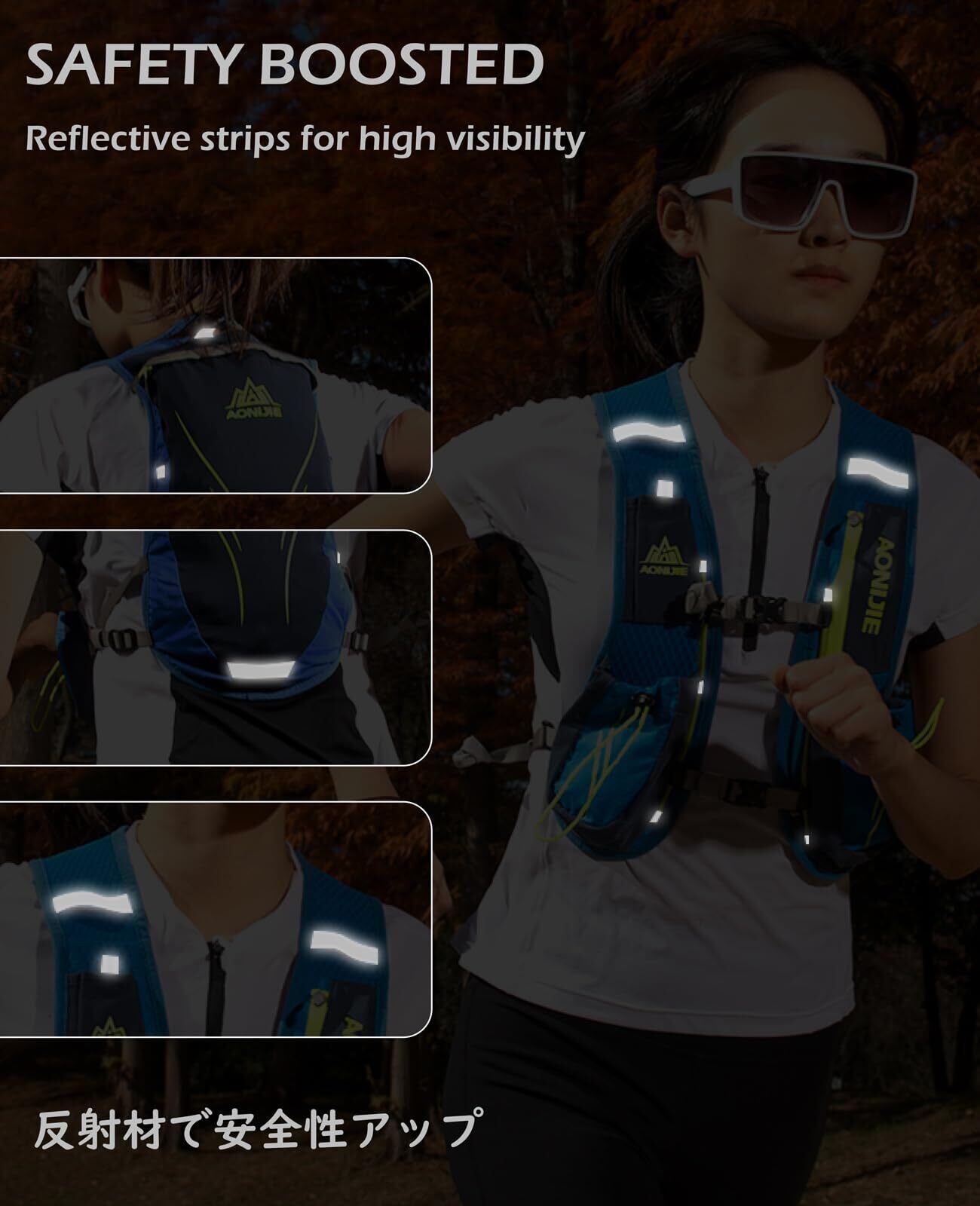 【調節可能】-- サイクリングバッグは使用時のフィット感の向上と負担を軽減するために、調節可能なストラップが配備されます。体格に合わせて調整できるし、ジョギング時リュックの揺れを軽減させます。よりしっかりとしたフィット感が得られるトレラン ザック。