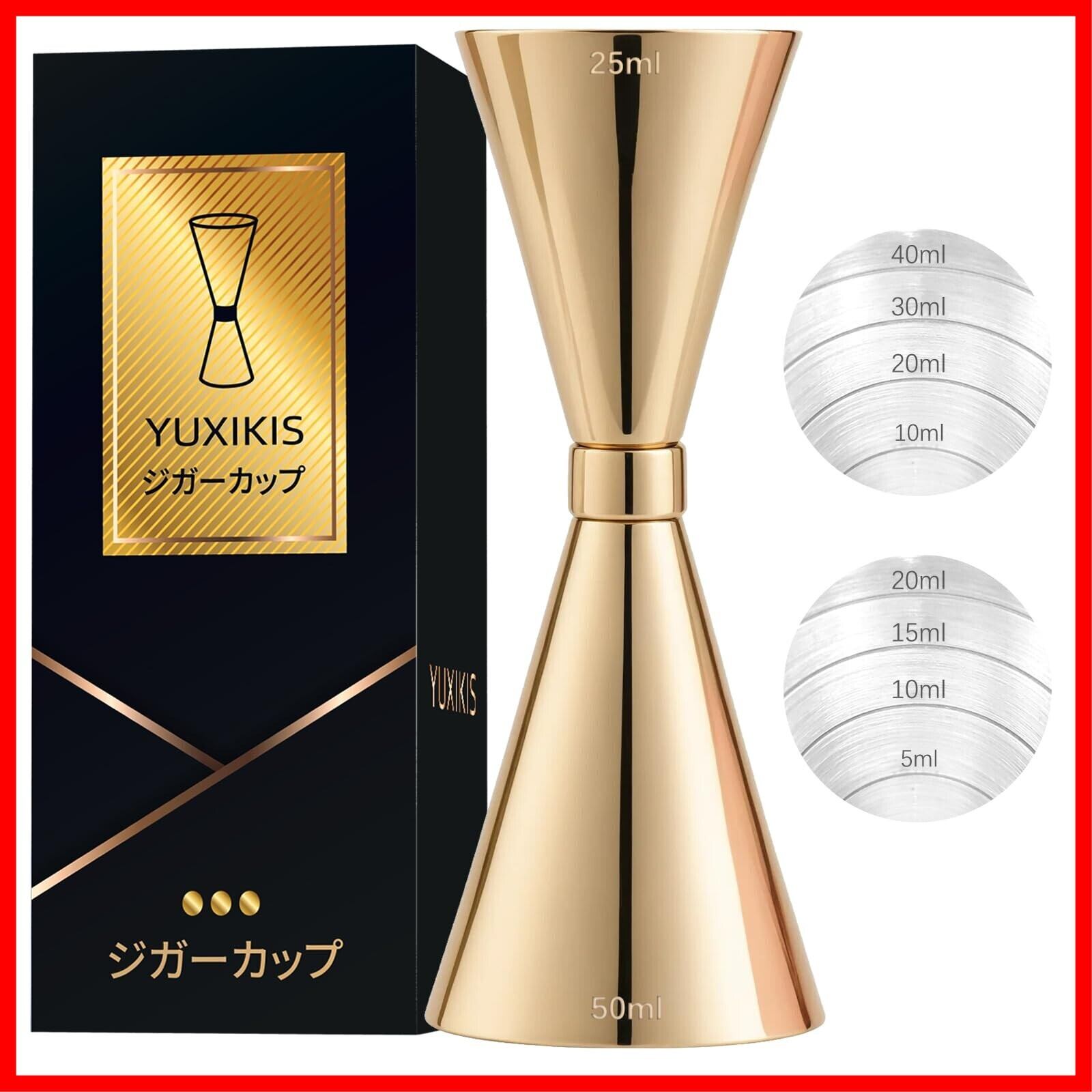 YUXIKIS メジャーカップ、計量カップ、ジガーカップ、目盛り付きカクテル量杯、酒量器、ウイスキー 計量、304 ステンレススチール製の厚手ダブルヘッド一体型 (25/50ML ゴールド)