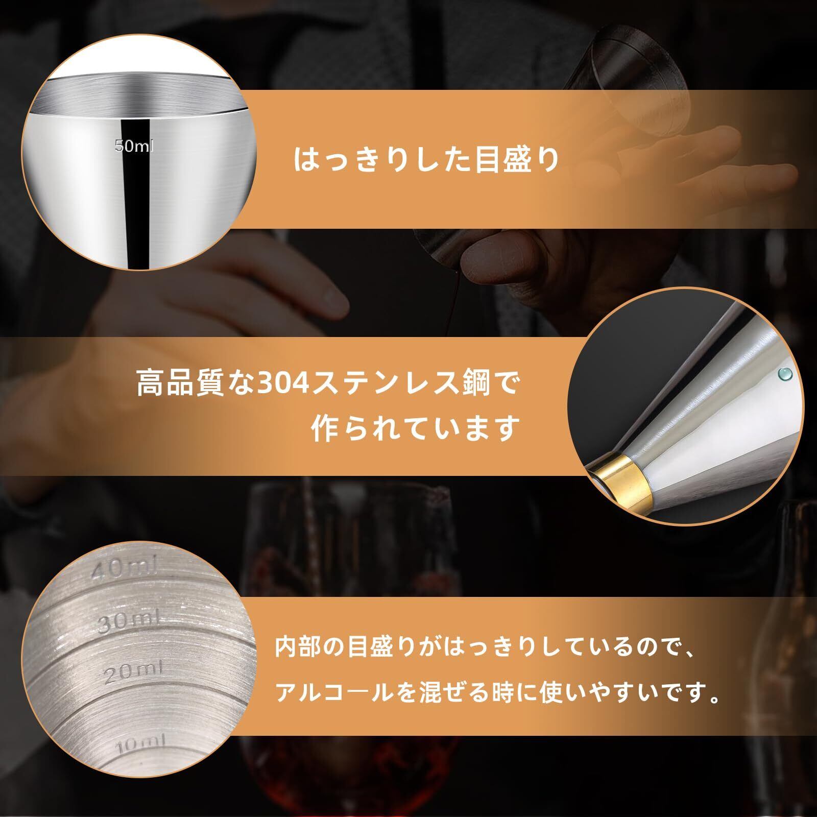 【正確な測定】内部の永久レーザーエッチング測定は磨耗せず、測定は正確です。カクテルメジャーの外部容量は30ML 、45ML 、60MLと90ML、ジガーカップラーの内部容量は10ML、20ML、30ML、45ML、60MLです。バランスを維持し、カクテルの量を正確に測定するための指