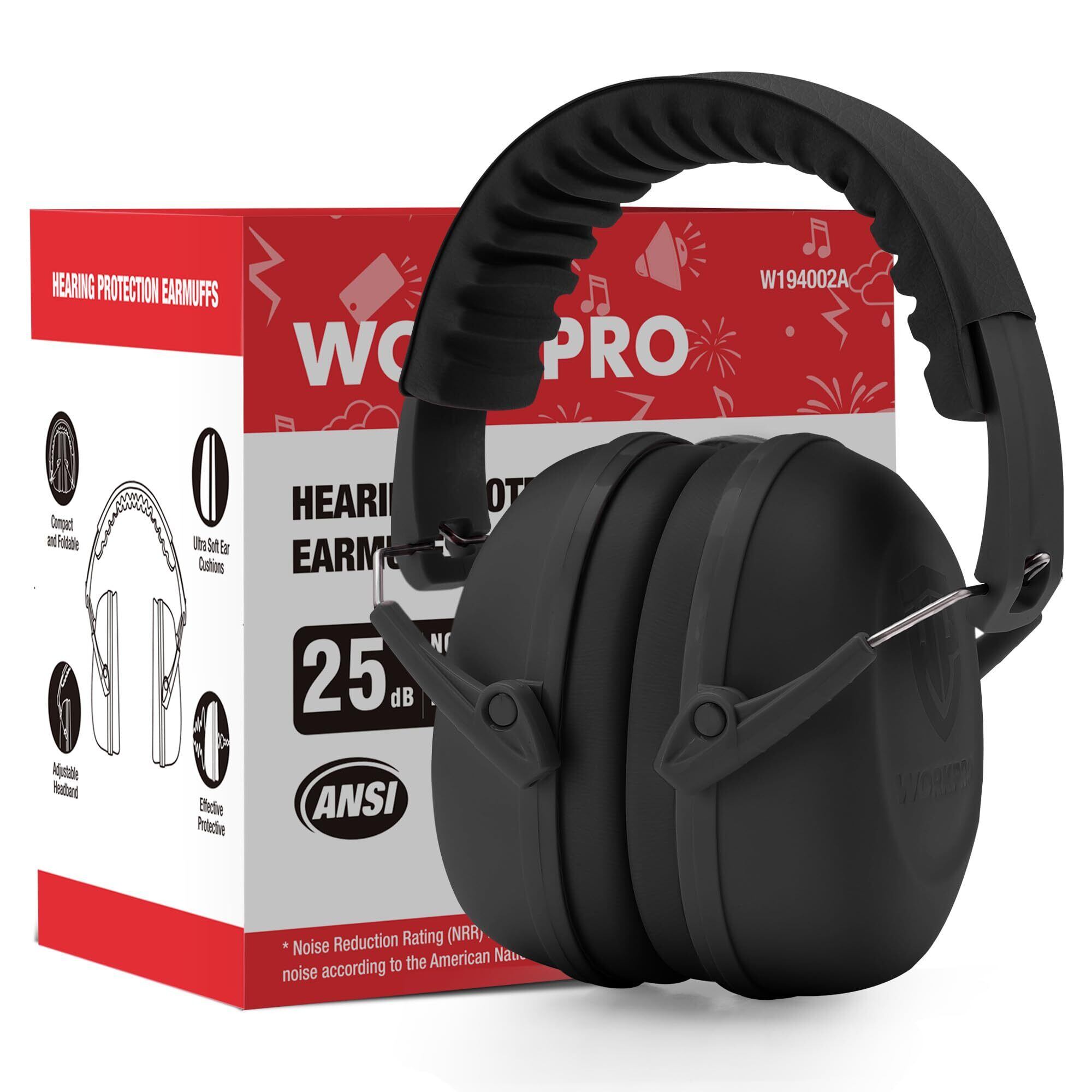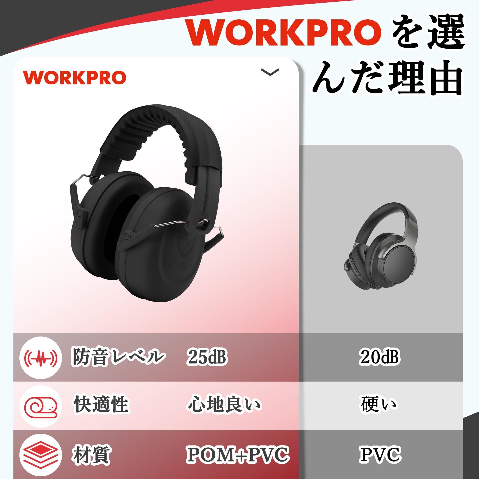 [WORKPRO] イヤーマフ 子供用 防音イヤーマフ 防音値 NRR25dB 安全イヤーマフ 防音 聴覚過敏 睡眠用 遮音 聴覚保護 学生用 キッズ用イヤーマフ 耳カバー 耳あて騒音対策 長さ調整可能 折りたたみ型 柔らかいイヤークッション【ブラック】