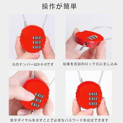南京錠 TSAロック 4個セット ダイヤル式 ワイヤーロック 暗証番号 スーツケース 海外旅行用鍵 ジムロッカー荷物バッグ用ロック ダイヤル式ロック 組み合わせ 設定が簡単 安全性 小型 防犯 便利 防水