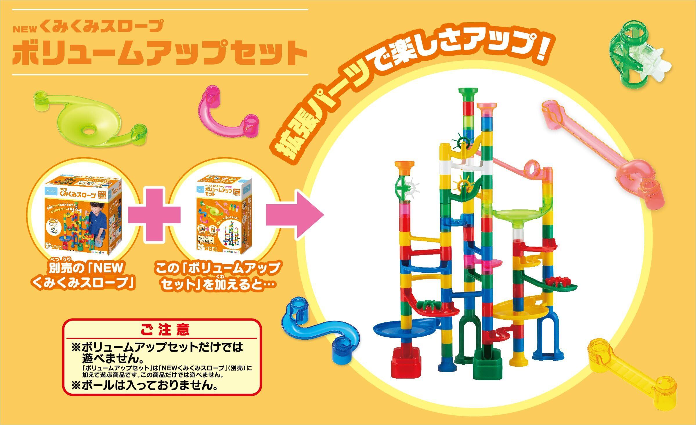 本商品は「NEWくみくみスロープ」(別売)に加えて遊ぶ商品です。「ボリュームアップセット」だけでは遊べません。また、ボールは入っておりません。