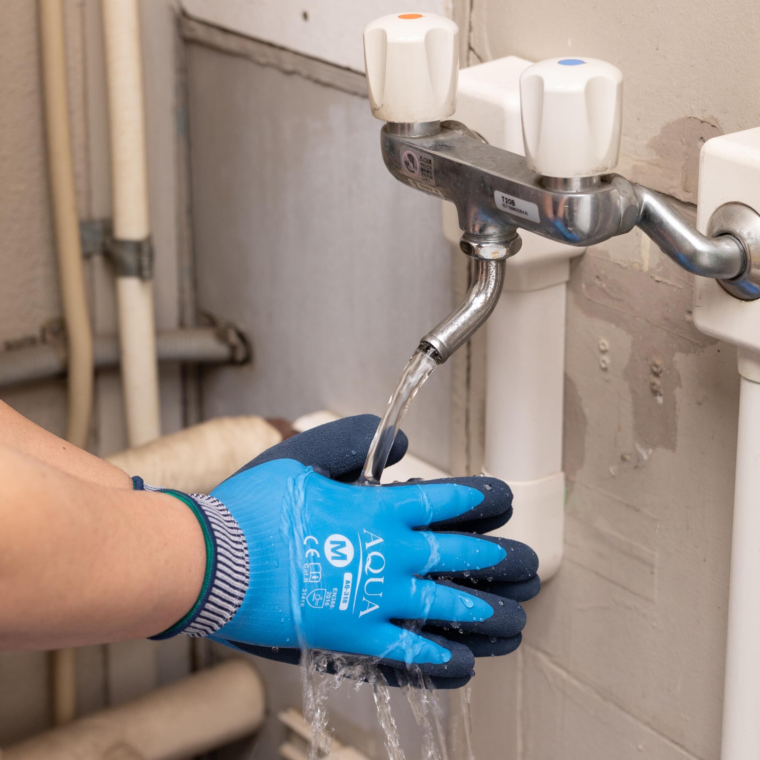 ウィード(Weed) 洗浄・清掃作業 作業用手袋 防水 グリップ 天然ゴム Lサイズ AQUA AQ-318 (1双入り) ブルー