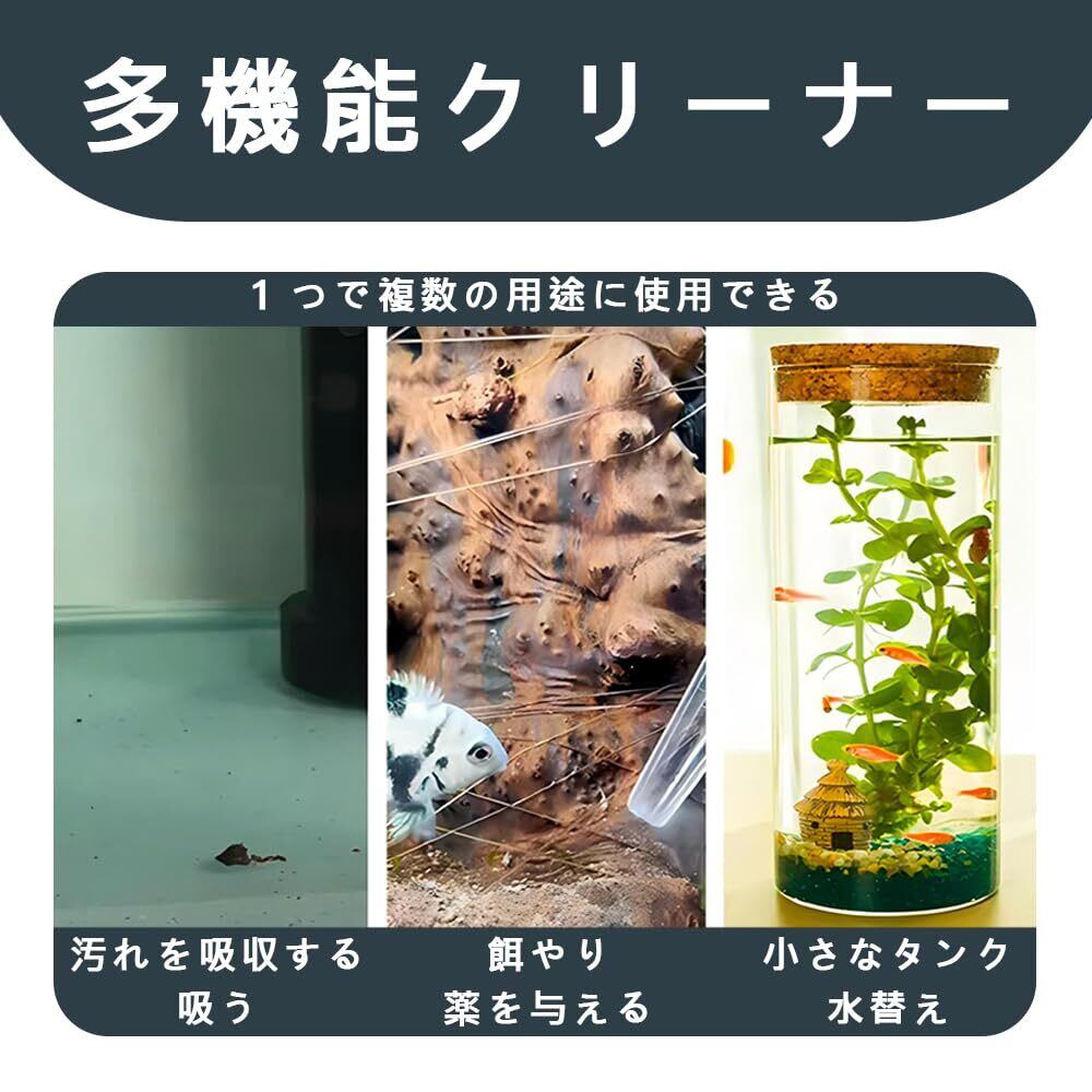 【多用途】この水槽の水替えツールは、小さな水槽の水の交換、底に溜まったゴミや食べ物の残りの除去、さらには卵や稚魚の移動にも適しています。マルチに使える便利なアイテムです。