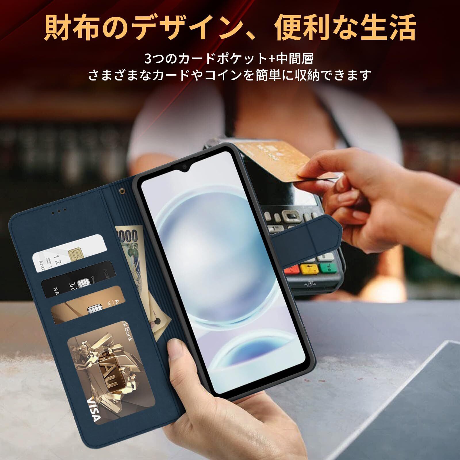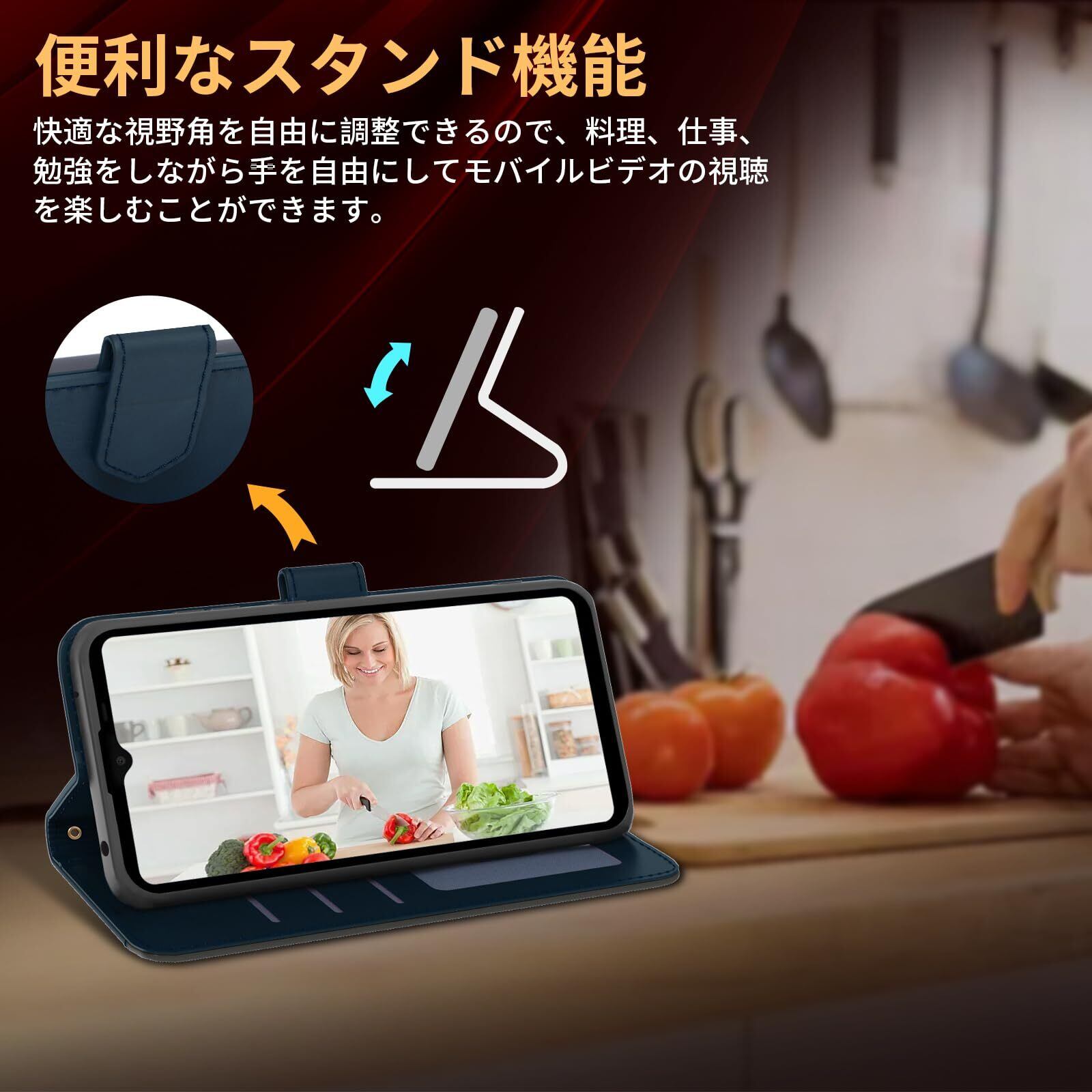 【スタンド機能&カード収納】横置きスタンド機能:横置きスタンド機能により、好きな角度で動画鑑賞や読書などを楽しめます。両手が自由になるのでとても便利です。動画鑑賞時にスタンドがないことを心配する必要がなくなり、スタンドとして他の物に頼る必要もなくなります。長距離列車、飛行機旅行、料理やフィットネスなどでの教育動画鑑賞など、多くのシーンに適用でき、とても実用的です。カード収納:携帯ケースの背面にはカードポケットが3つと紙幣用のフリーポケットが1つあり、ポイントカード、カード、紙幣、名刺、月間パス、運転免許証などを収納でき、旅行に便利です。SUICA/PASMO/ポイントカード/メモカードなどを収納でき、ちょっとした旅行には十分です。使わないという選択もできますが、その存在はあなたの体験をより便利にすることができます。