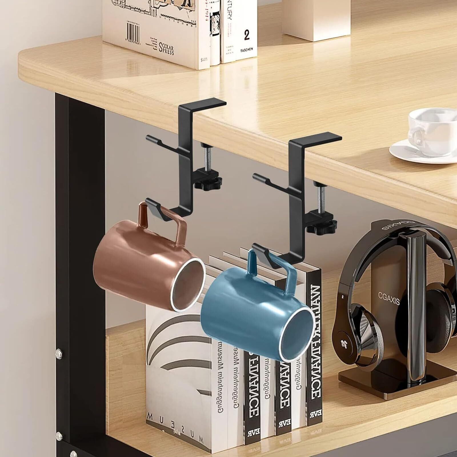 【調整可能】フックのネジは調節可能で、穴あけ不要、様々な厚さの棚板やテーブル周りに取り付けることができます。棚板やテーブル適用の厚さ:約1 ~5cm