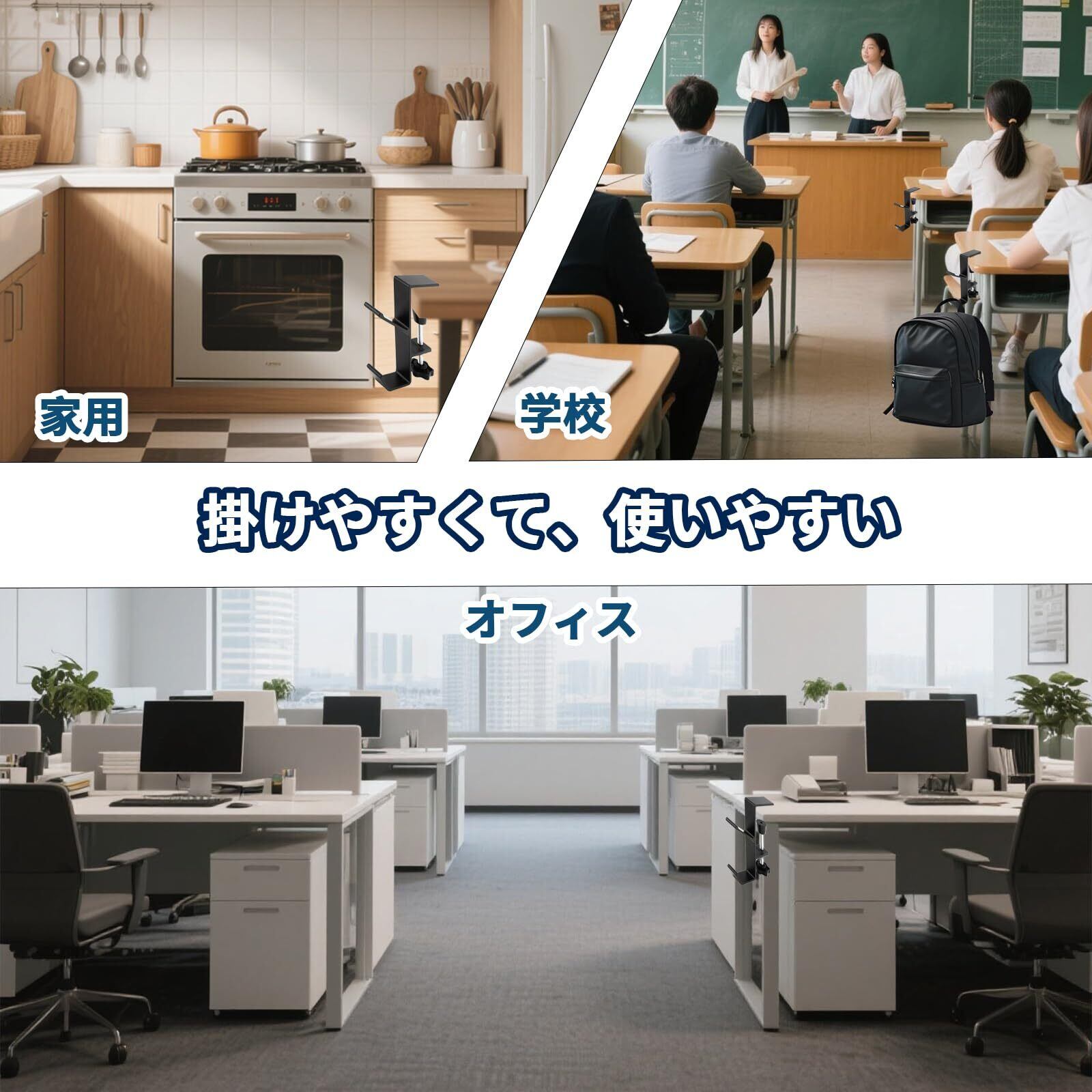【幅広く適用】家用、学校、会社ではデスクに取り付けてカバンをぶら下げ、 バッグをかける事ができる便利グッズです。