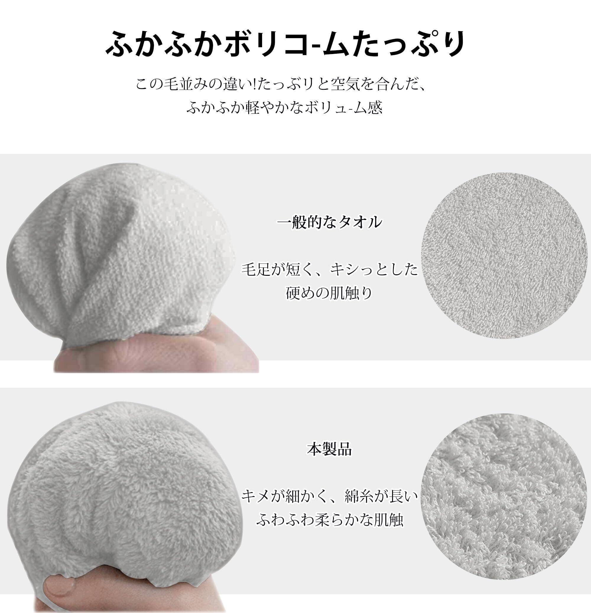 【優れた吸水力と速乾性】サイズ:約34×80cm、素材:綿100% 太番手のコ-マ綿糸をロングパイルで軽やかに織り上げることで、ふわっとたっぷリの空気を含み、同時に水分もくんくん吸い上げる構造が生まれます。「吸水スピード」「吸水量」「吸水方向」、といった吸水力のすべてを高次元でを兼ね備えました。髪や肌など濡れている部分に軽く当てただけで、水分を吸収できます。