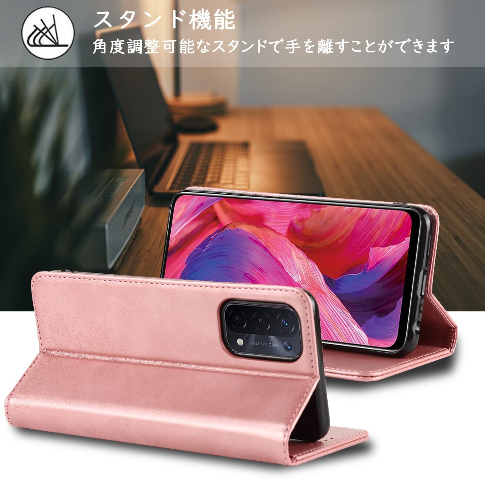 【Hamany】OPPO A54 5G ケース 手帳型 oppo a54 ケース カード収納 スマホケース オッポ A54 5G 収納 au OPG02 ケース 耐衝撃 耐摩擦 耐久性 横置きスタンド機能 oppoa54スマホケース マグネット式 レザー カバー -ファッションローズゴールド