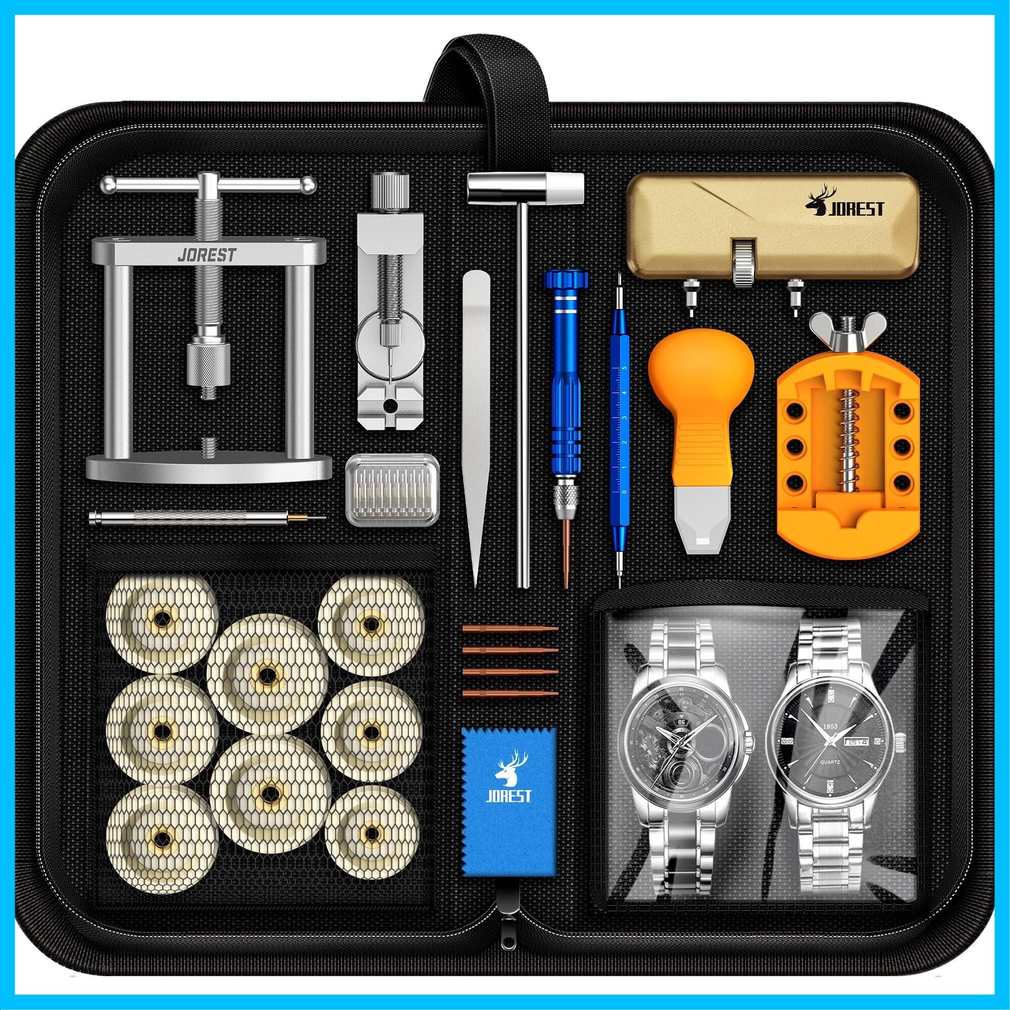 JOREST腕時計修理工具セット+裏蓋閉め器、電池交換工具、こじ開け時計オープナー、時計ベルト調整、時計バンド交換工具、時計こうぐ、時計キット、時計でんち交換工具、バネ棒外し、取扱説明書(英語版)