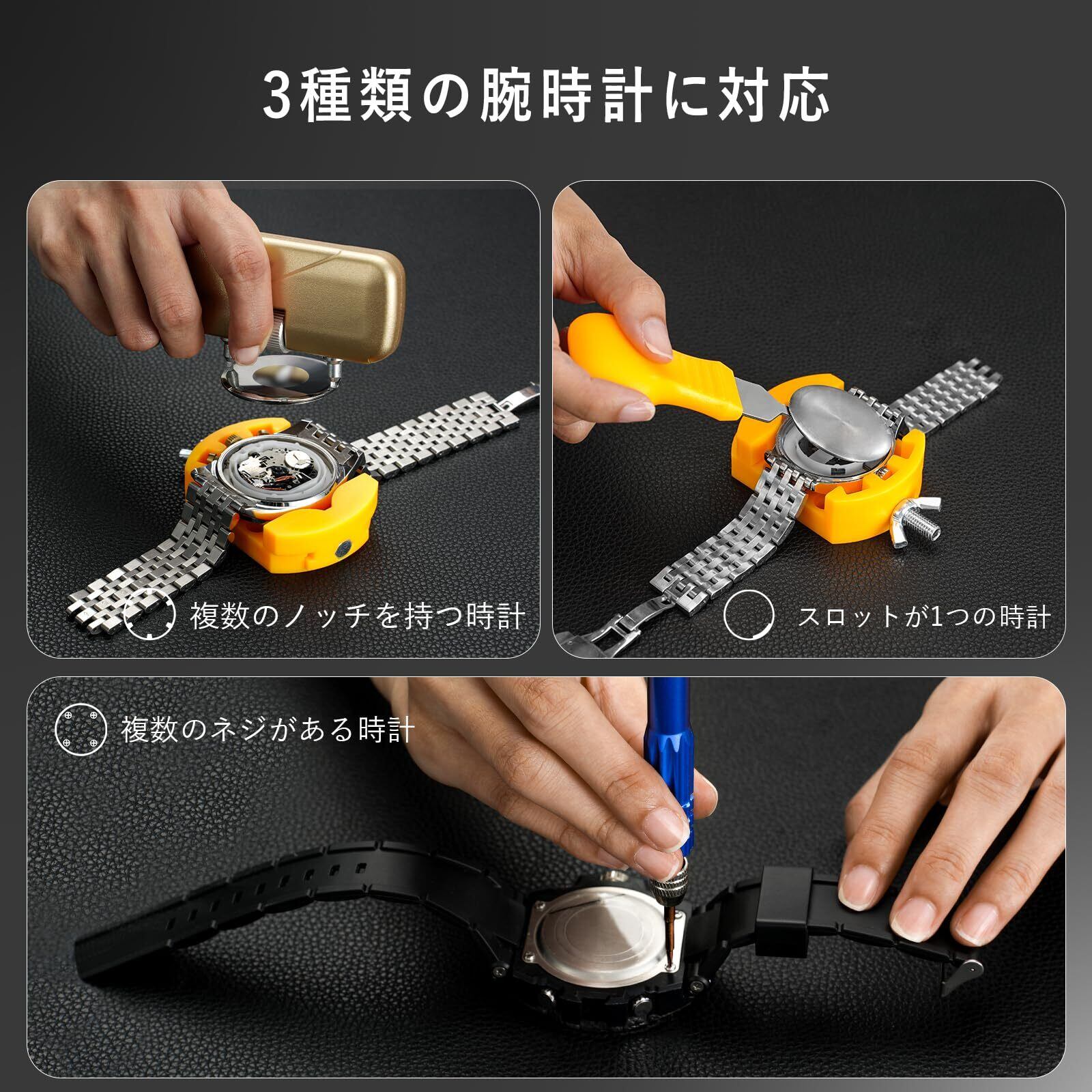 【幅広い用途】このツールセットは、3種類の時計の裏蓋の開閉、ストラップの調整、時計のネジの取り外しなど、様々なニーズを満たすことができます。