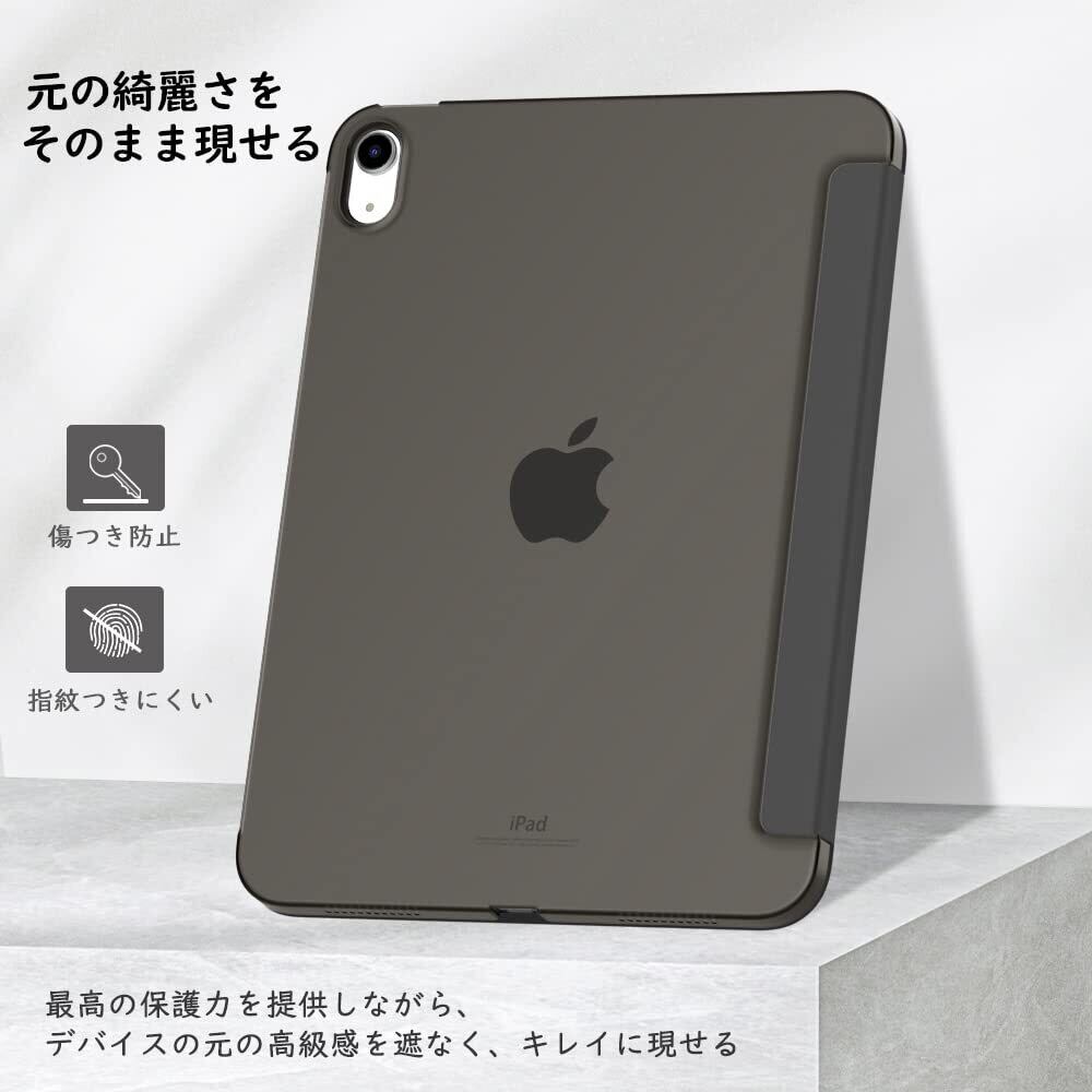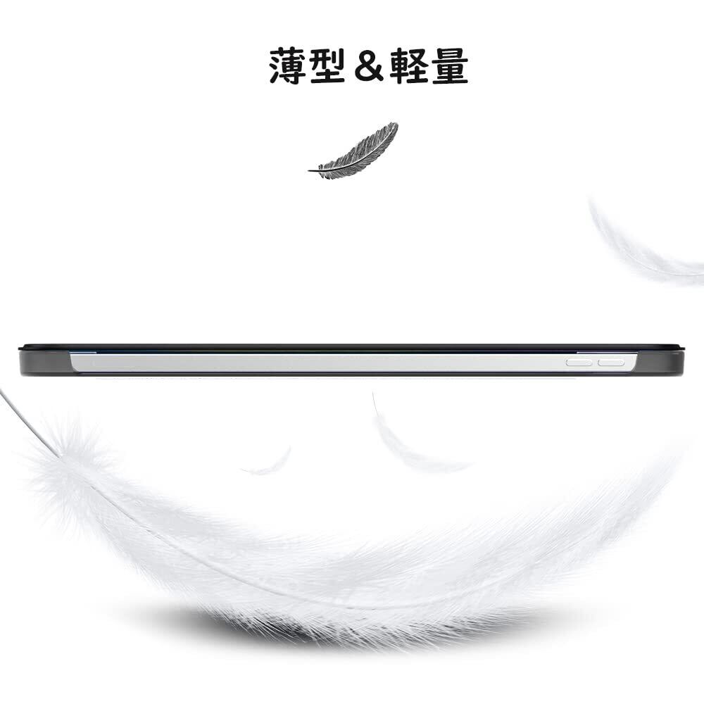 「上質な素材採用」蓋は手触りが良く高級感のあふれる耐久性に優れた高級PUレザーで、バックケースは頑丈で耐摩耗性の高いマット半透明のPC素材を採用しており、アップルロゴが透けて見えて綺麗に見映えてきます。裏地材質は液晶表面に優しいマイクロファイバーの仕上がりで、タブレットに最高の保護力を提供してくれます。