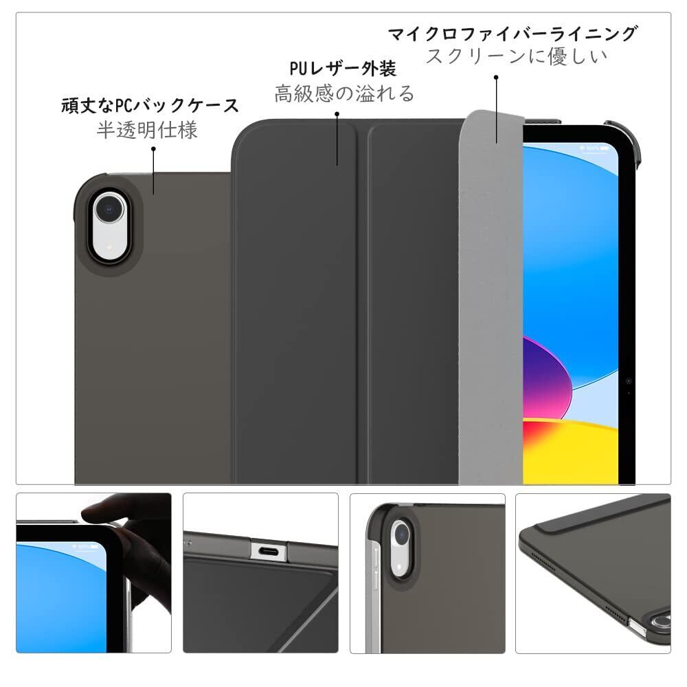 MoKo iPad 第11世代 (A16) ケース 2025、iPad 第10世代 ケース 2022 アイパッド 11/10世代 11/10.9インチ 保護カバー 手帳型 スタンドケース オートスリープ対応 高級PUレザー外装 PC製シェルケース マイクロファイバー裏地 軽量 薄型 傷つき/汚れ防止 SpaceGray
