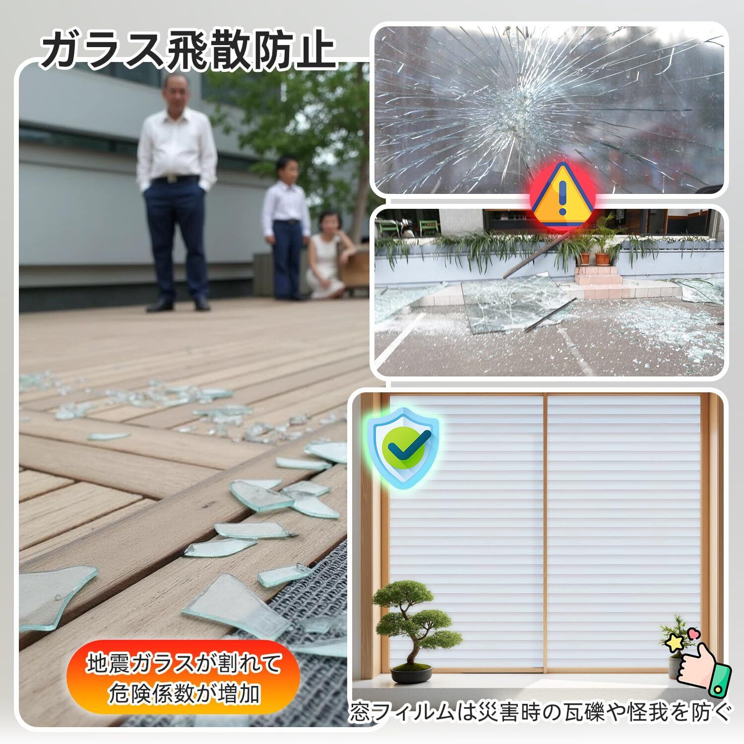 プライバシー保護、紫外線対策: この窓ガラス目隠しフィルムは、優れた紫外線防止機能を備えており、紫外線による劣化を防ぎます。紫外線から家具やインテリアを保護し、長期間美しい状態を保ちます。また、プライバシーを守りながら、自然光を柔らかく取り入れ、外からの視線を遮ります。従来のブラインドのように面倒な調整が不要で、快適で便利な使用感を提供します。