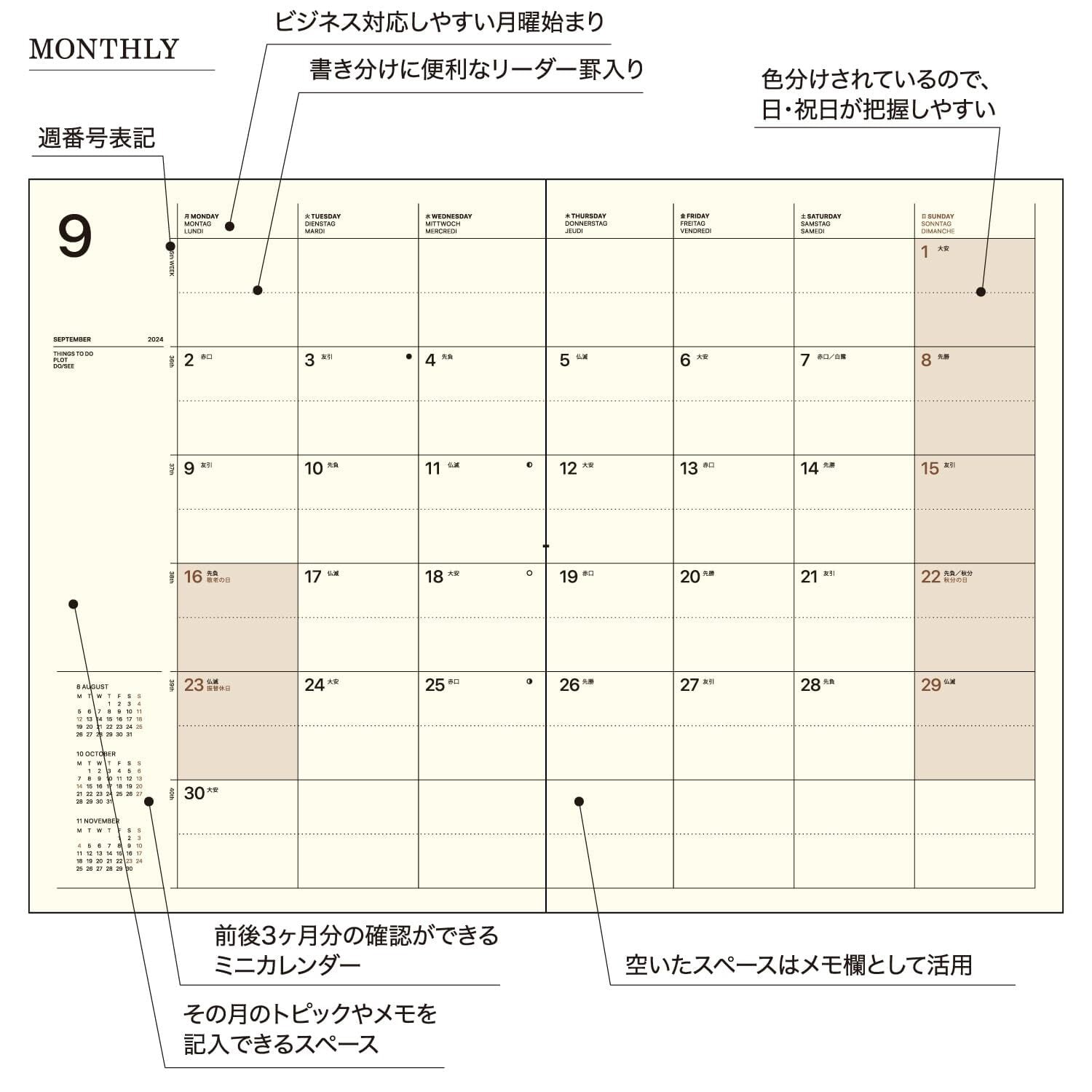【サイズ】幅15.5×高さ22cm 【掲載期間】2024年9月~2025年12月 月曜始まり