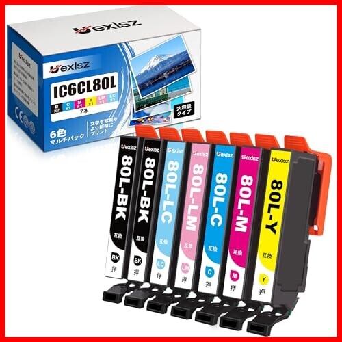 Uexlsz IC6CL80L インク とうもろこし Epson用 インクカートリッジ エプソン 80l エプソン対応 epson インクカートリッジ 80L IC6CL80L + ICBK80L (6本セット+黒1本) 合計7本 とうもろこし 大容量 icbk80l ep707a インク プリンター