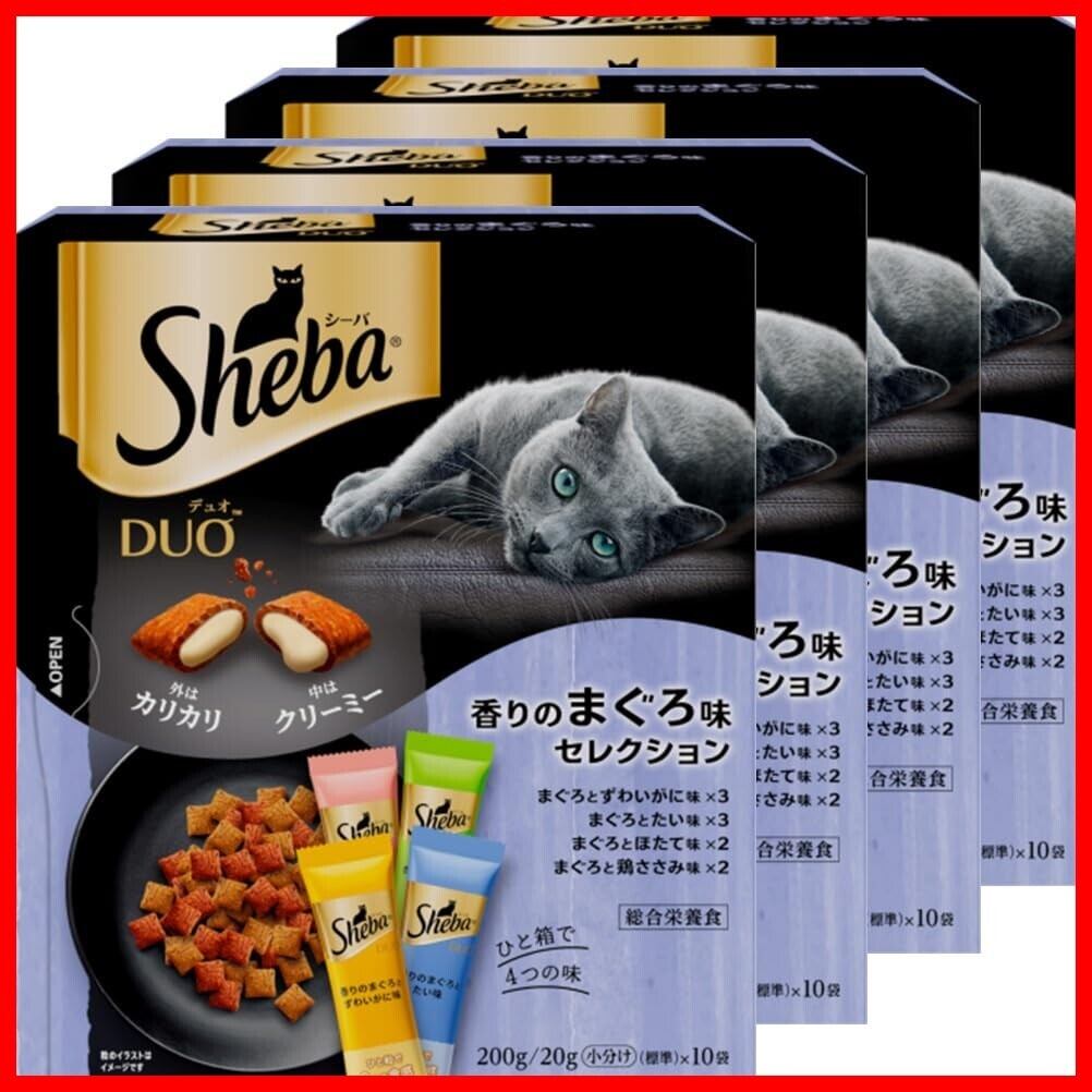 シーバ (Sheba) デュオ 香りのまぐろ味セレクション 成猫用 200g(20g×10袋)×4個 キャットフード [総合栄養食・下部尿路の健康に配慮・20g使い切りサイズ]