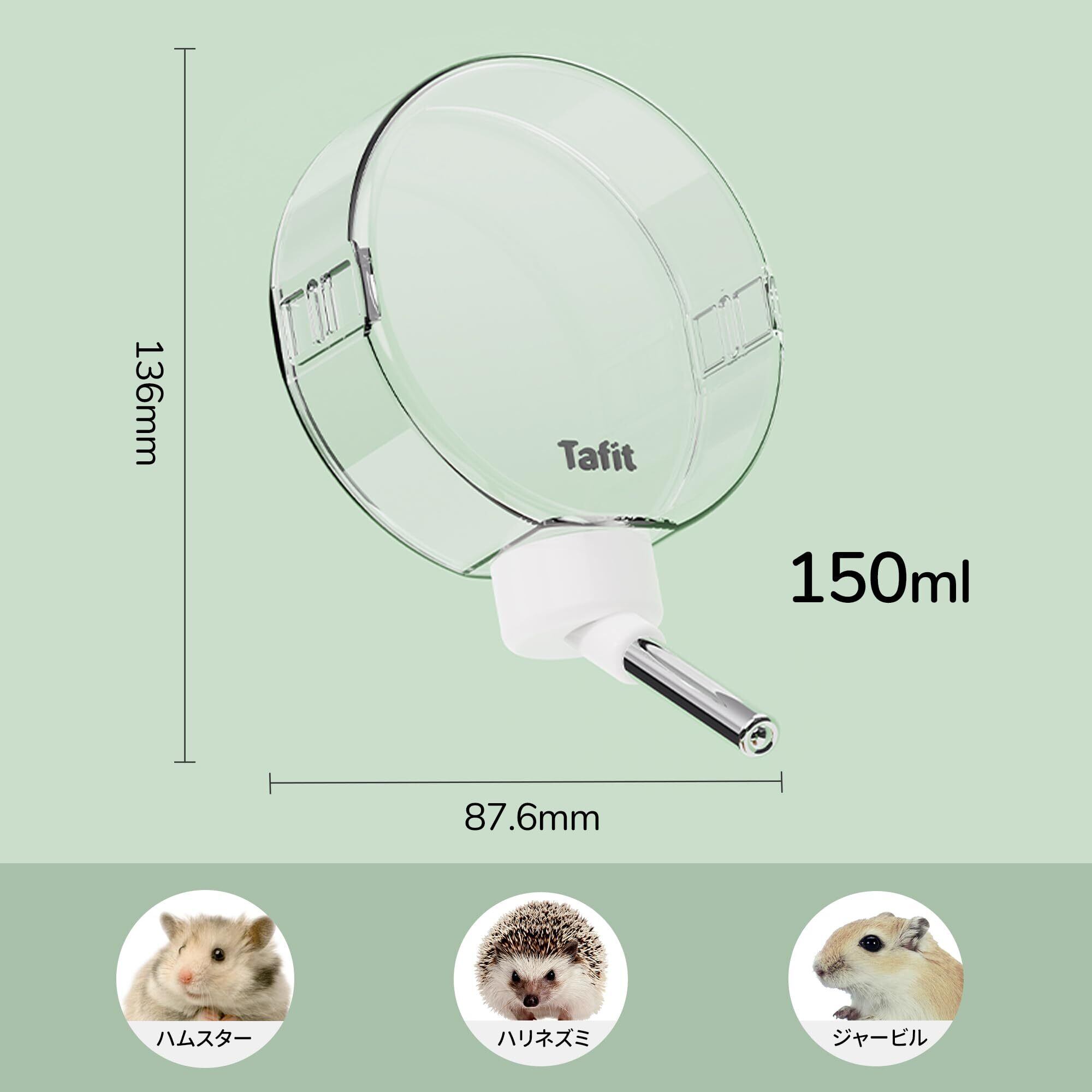 Tafit バブルウォーターボトル ハムスター 水飲み ペット 水漏れ防止 自動給水器 ウサギ ジャービル モルモット チンチラ 小動物用 150ml (ステンレス鋼ノズル)