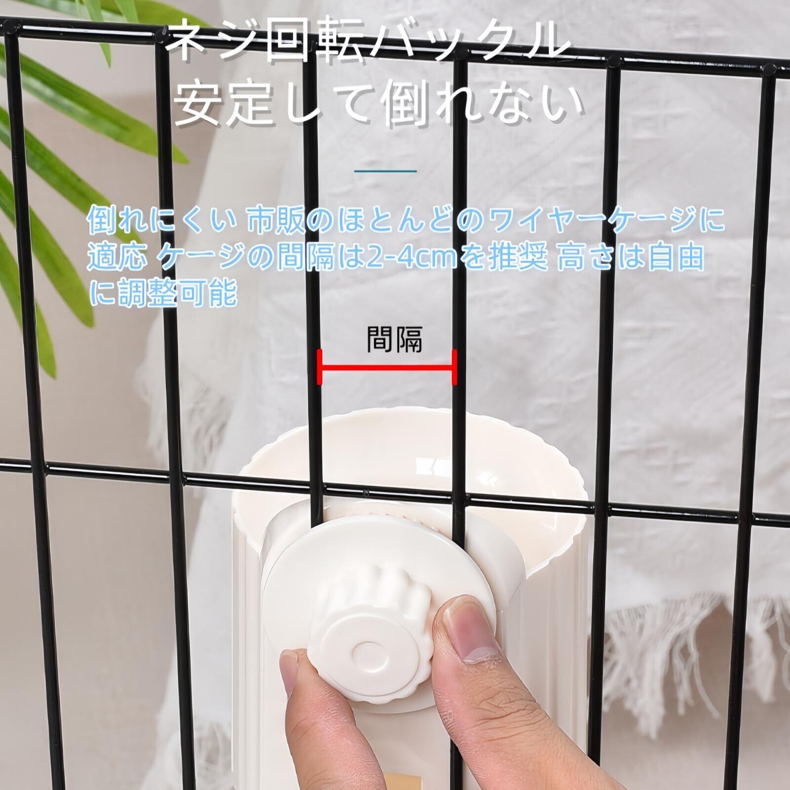 安定性が高く倒れにくい:ねじ式ロックデザインで安定性が高く、倒れにくいウサギ給水ボトル。市販のほとんどのケージ(金網間隔2-4cm推奨)に対応し、高さも自由に調整可能です。