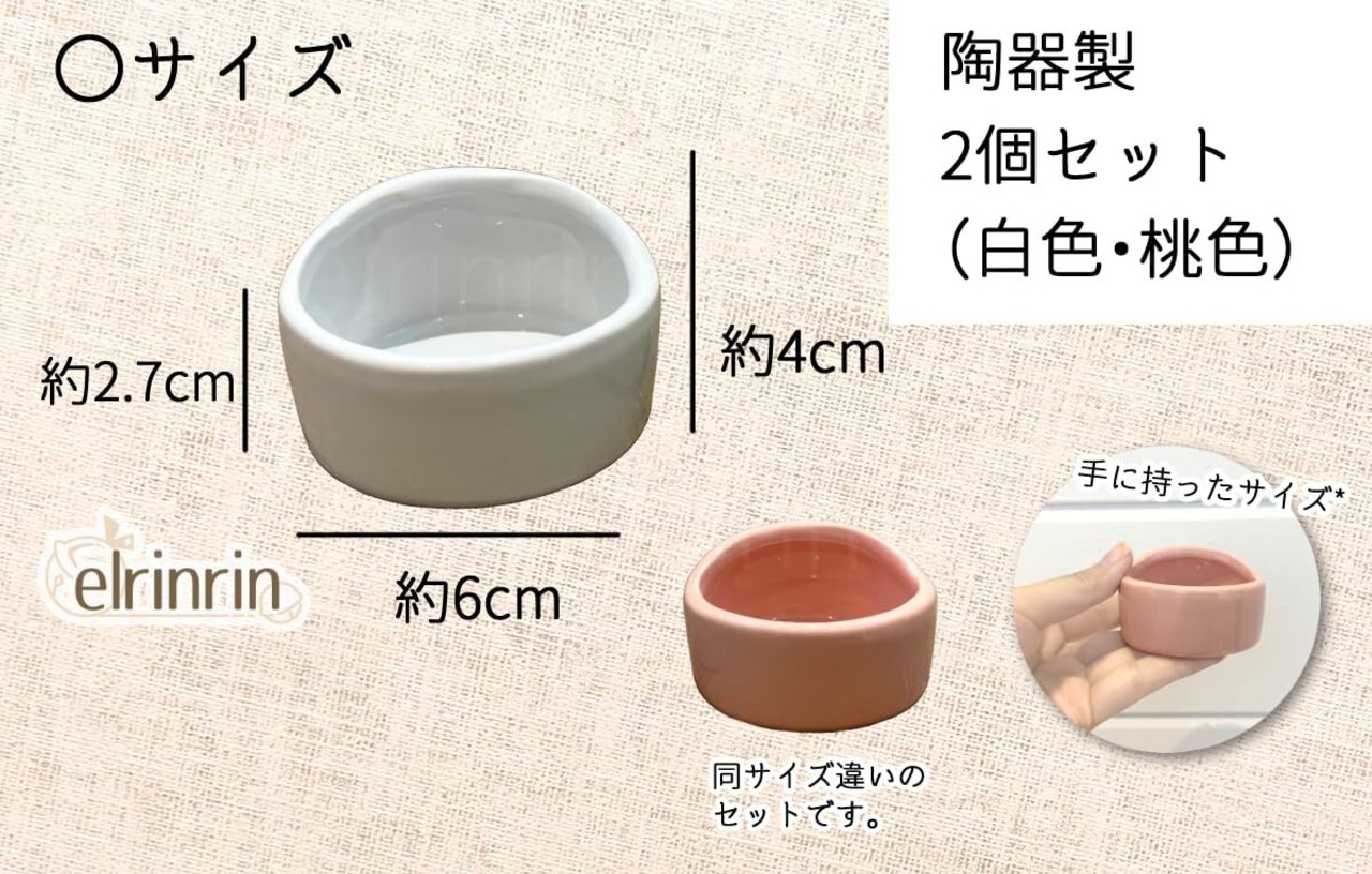 elrinrin 餌入れ 水飲み 置き型 陶器 エサ 器 水入れ えさ入れ 小鳥 フードボウル フードフィーダー ボウル 小動物 皿 白・桃セット