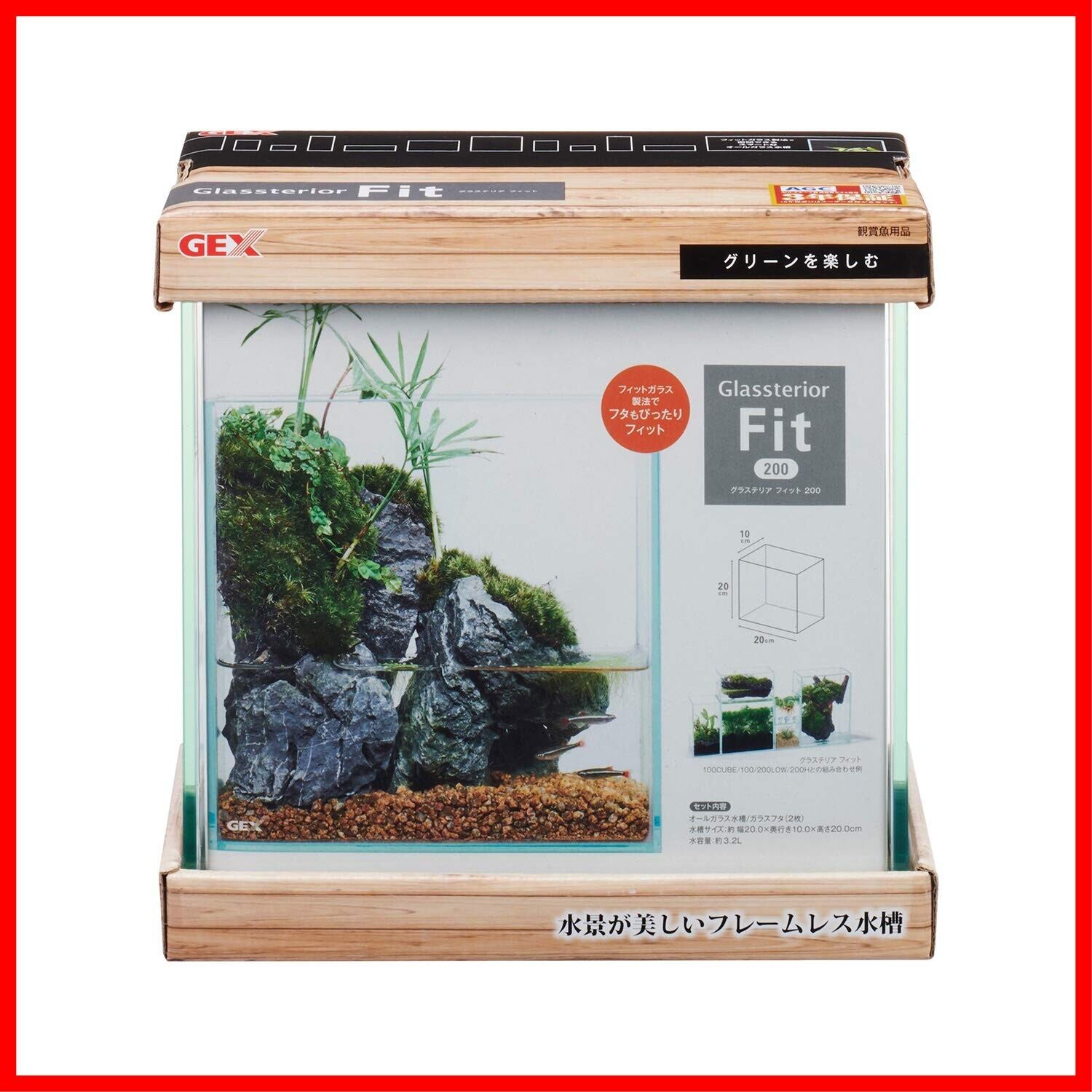 ジェックス GEX AQUARIUM グラステリアフィット200 ガラスフタ付 フィットガラス製法 ミスト式対応 3年保証フレームレス水槽W20×D10×H20cm 約3.2L