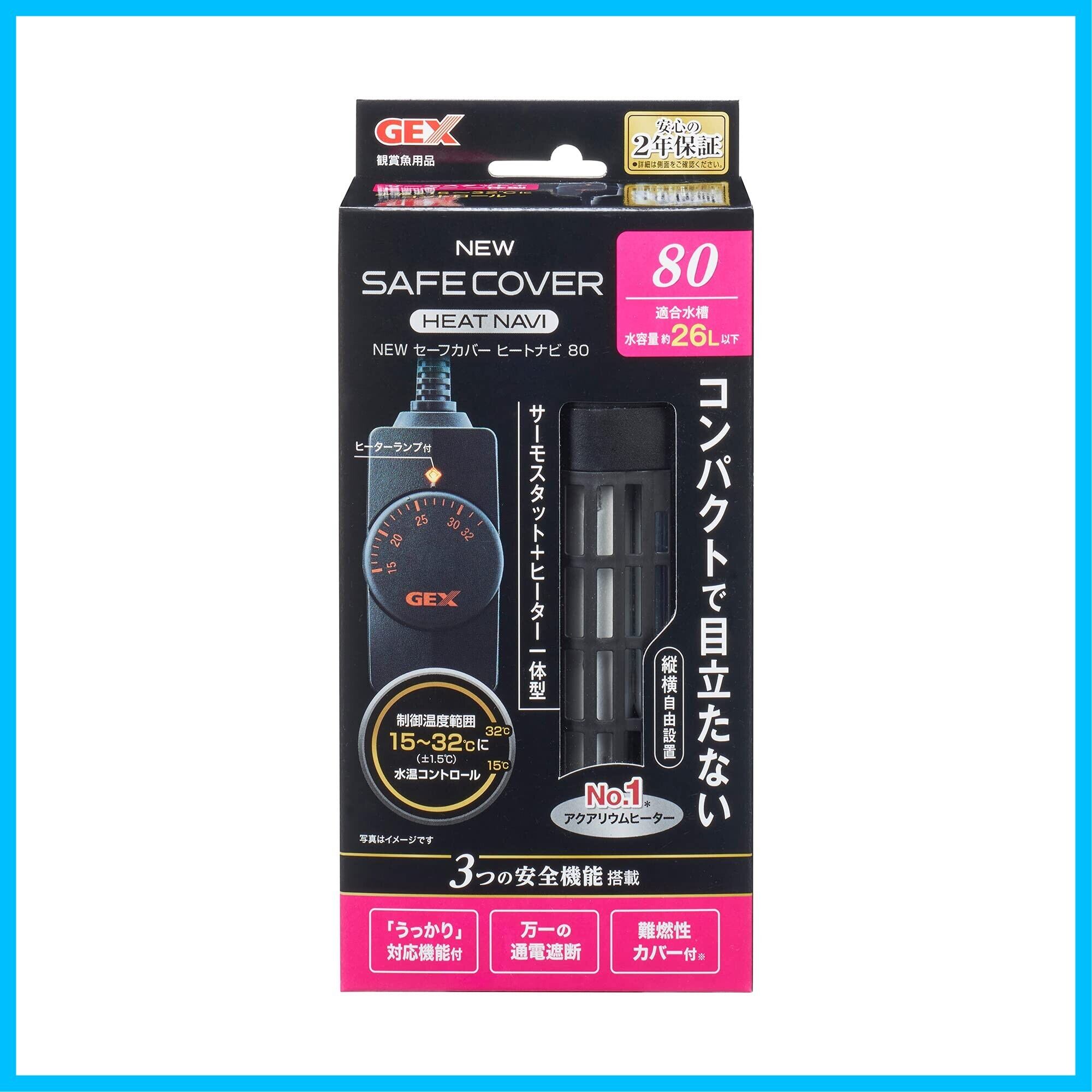 ジェックス GEX AQUA HEATER NEW セーフカバー ヒートナビ 80 サーモスタット+ヒーター一体型 縦横設置 安全機能付 SP規格適合 約26L以下の水槽用 80W