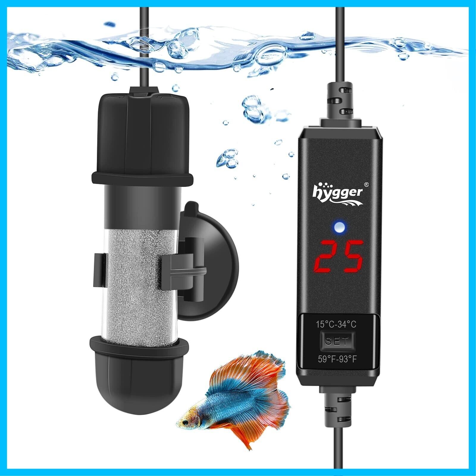 Hygger 水槽ヒーター 10W 石英防爆ガラス 温度調節可能 水中用ミニヒーター 吸盤付き 1-20L水槽に適用