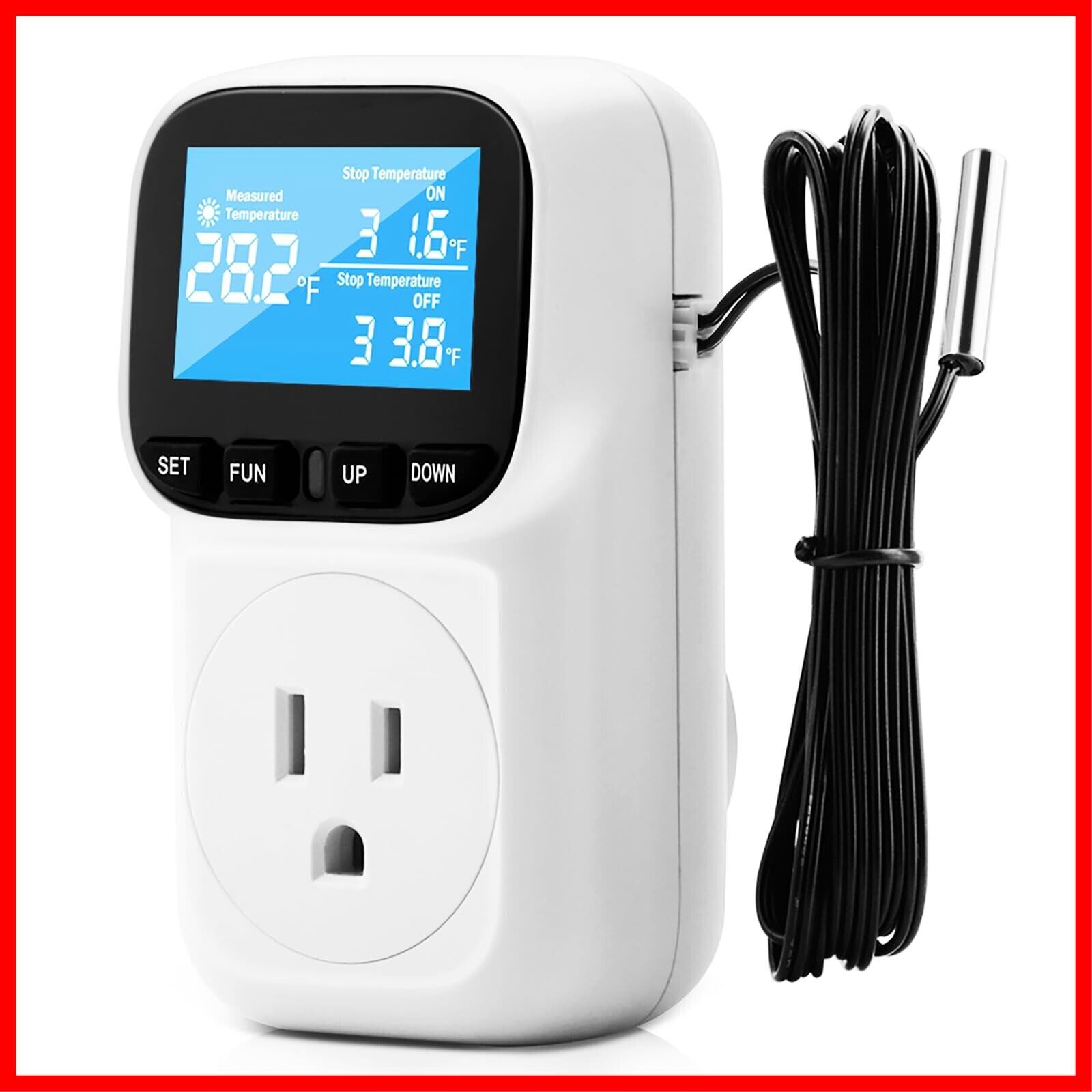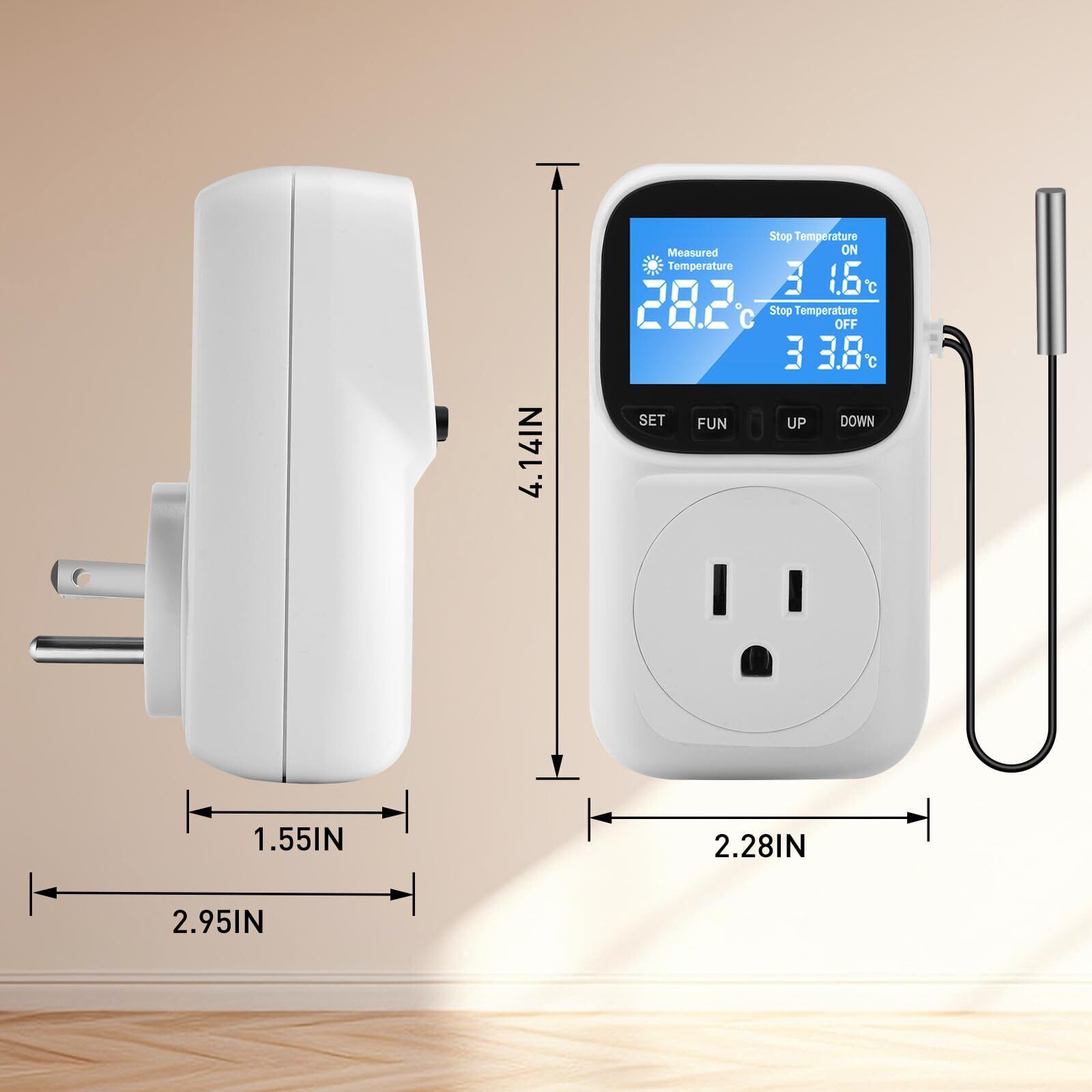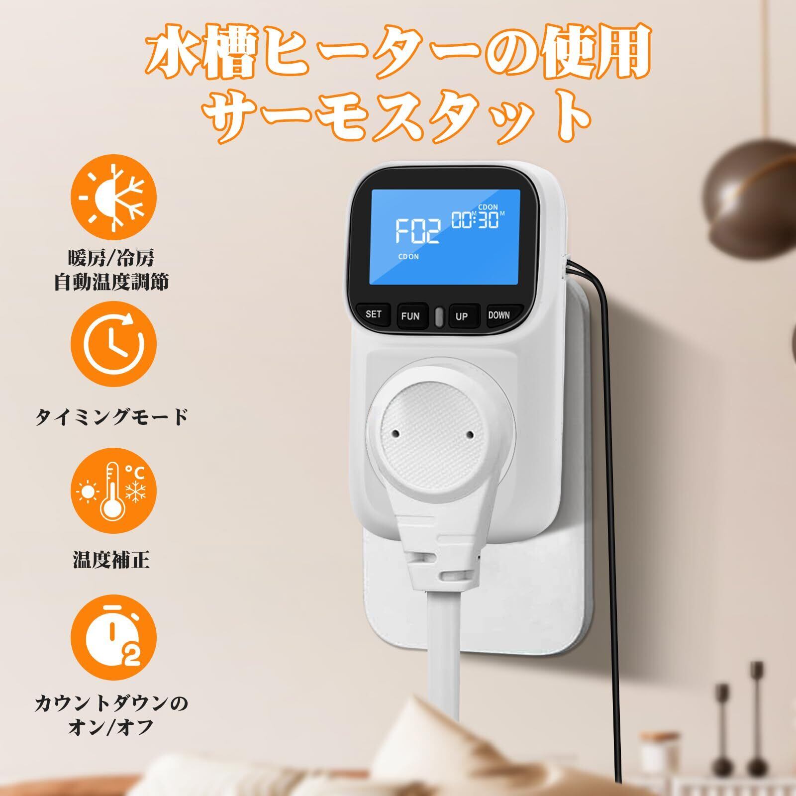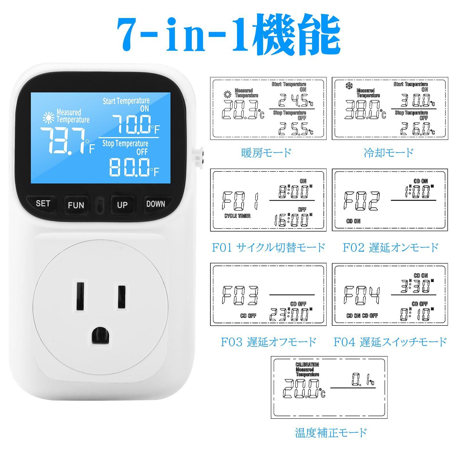 DiyStudio 7つの設定モード 1800W サーモスタット 温度制御ソケット爬虫類 夏の水槽の水温調節 ファン 水槽 サーモスタット 熱帯魚 ヒーター 水槽ヒーターの使用 暖房冷却制御 温度補正 タイマーモード(-40~120℃) 青いバックライト・スクリーン