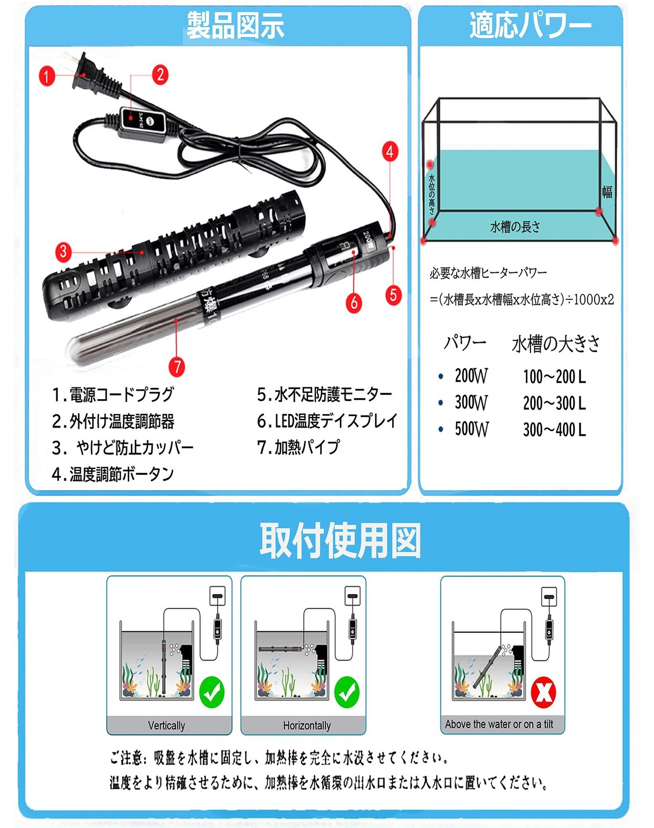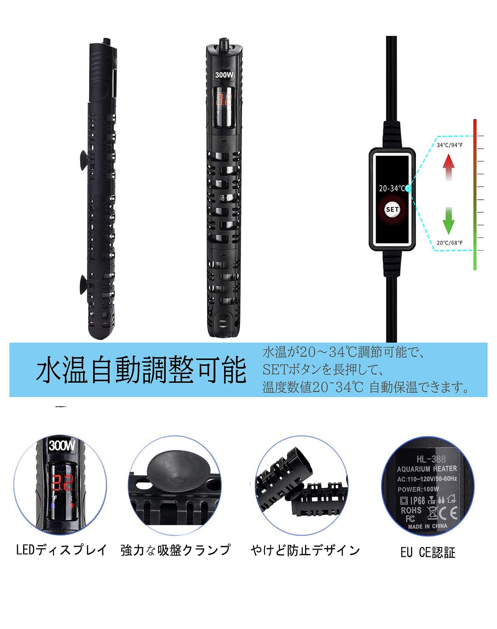 【インテリジェント均一加熱】本オートヒーターは、左右に配置された対流加熱管により、より均一で効率的な加熱を実現しています。さらに、迅速な加熱性能を備えています。このヒーターには二重検出プローブが搭載されており、より正確な温度検出が可能です。これにより、自動的に水温を調整し、水槽内の水温を常に一定に保つことができます。【品質保証】弊店の商品をご購入した上で、何かご問題とかあったら、弊店にご遠慮なくお知らせください。お客様はご安心で商品をご購入してください。