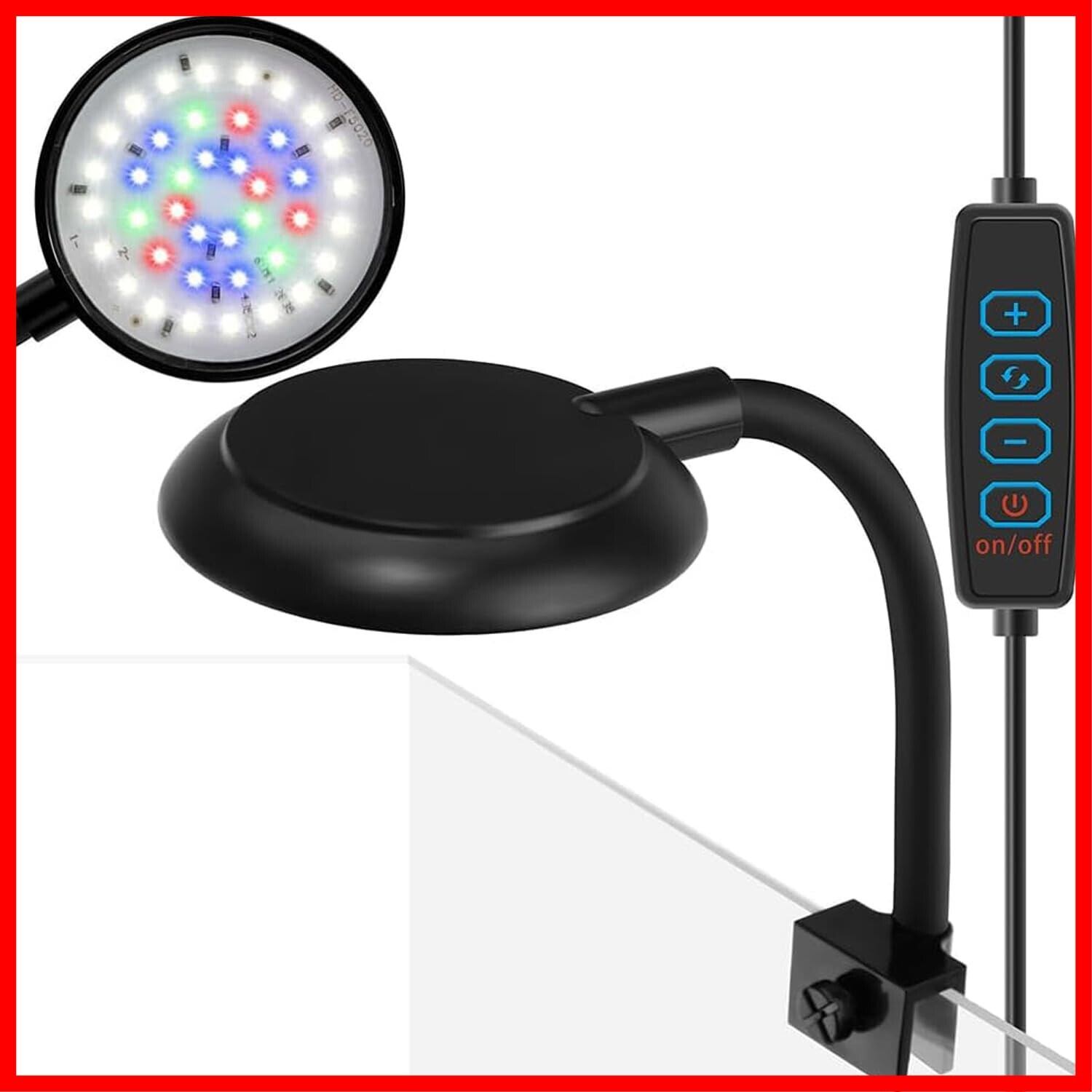 Mriocan 水槽ライト 5W 小型水槽用照明 3色転換でき 28個ランプ 10階段の光量 曲げ可能 360度調整 軽量 小型 高輝度 低エネルギー 水草ライト 熱帯魚ライト 水草育成 メダカ 観賞魚 熱帯魚 金魚飼育用 クリップタイプ 丸型/直方形水槽に対応 (ブラック)
