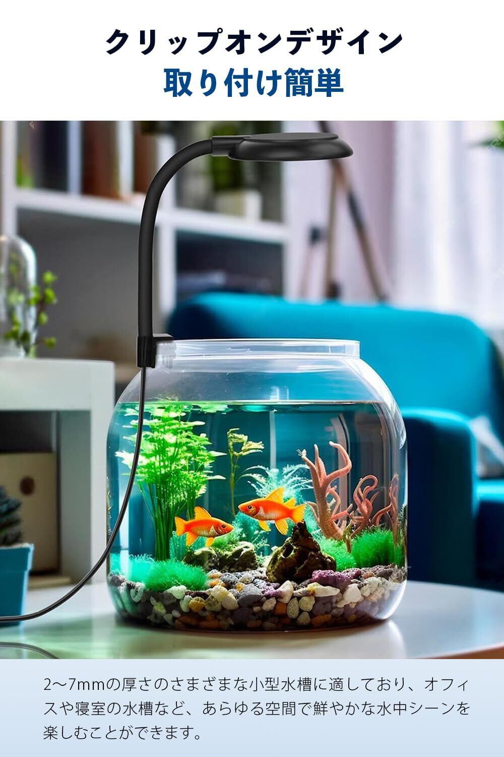 【360度調整可能】フレキシブルな回転ホースを採用しておりますので、360度調整が可能で、さまざまな照明ニーズに簡単に対応することができます。厚さ2~7mmのさまざまな小型水槽に適しており、オフィスや寝室水槽などのあらゆる空間で生き生きとした水中シーンを楽しむことができます。