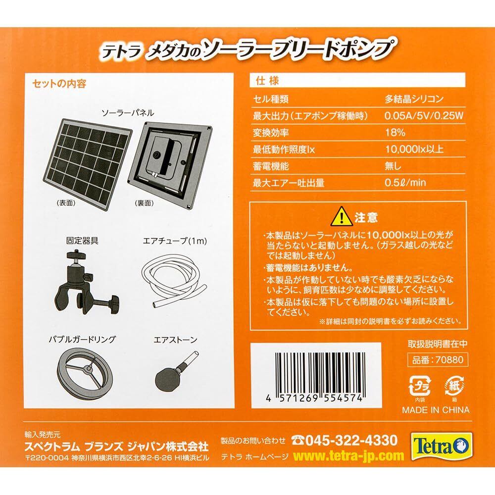 テトラ (Tetra) メダカのソーラーブリードポンプ 電源不要 屋外使用可能 ソーラーポンプ 池ポンプ ウォーターポンプ 太陽光発電 酸素供給 取付簡単 固定器具付 ガーデン ビオトープ 庭