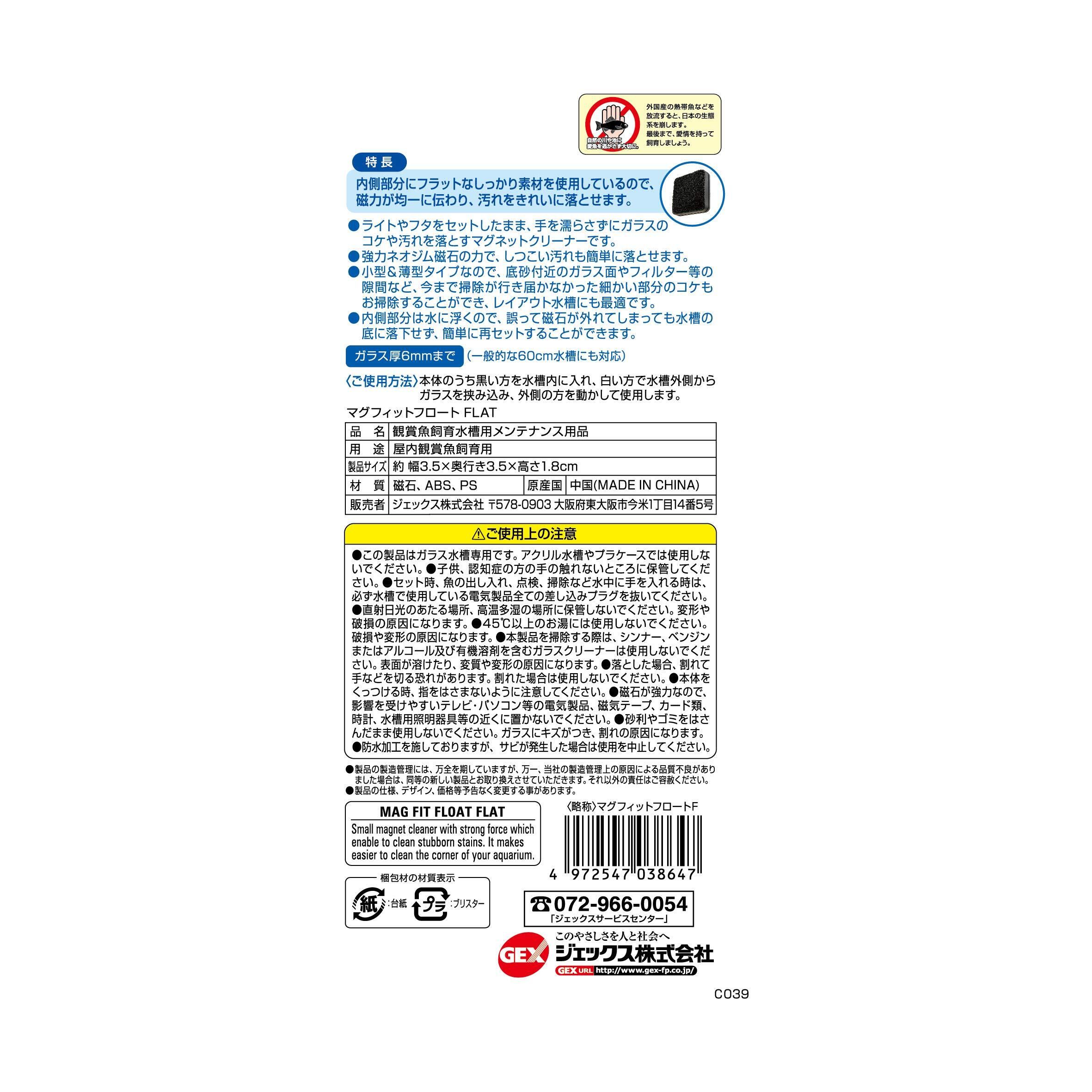 ジェックス GEX おそうじラクラク マグフィット フロート FLAT 平面ガラスのコケ・汚れ落とし 強力ネオジム磁石 浮く 小型 薄型