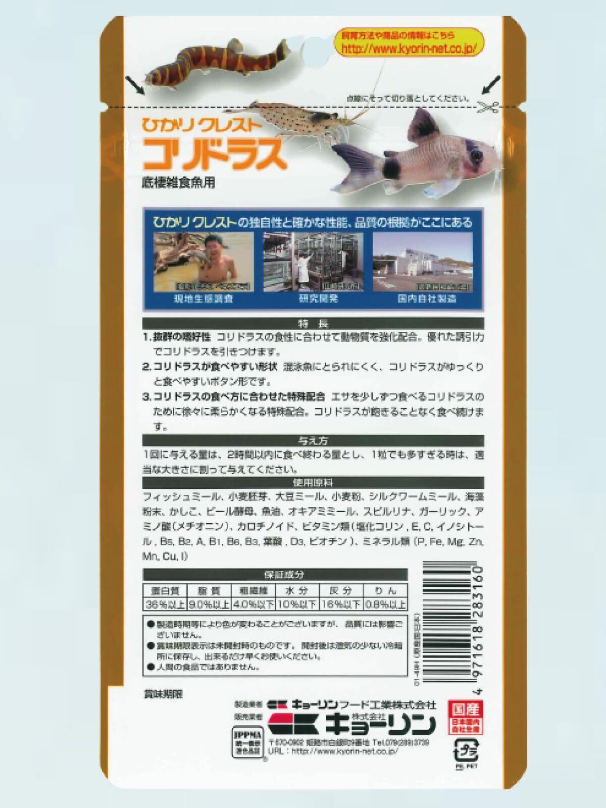 【抜群の嗜好性】 コリドラスの食性に合わせて動物質を強化配合。優れた誘引力でコリドラスを引きつけます