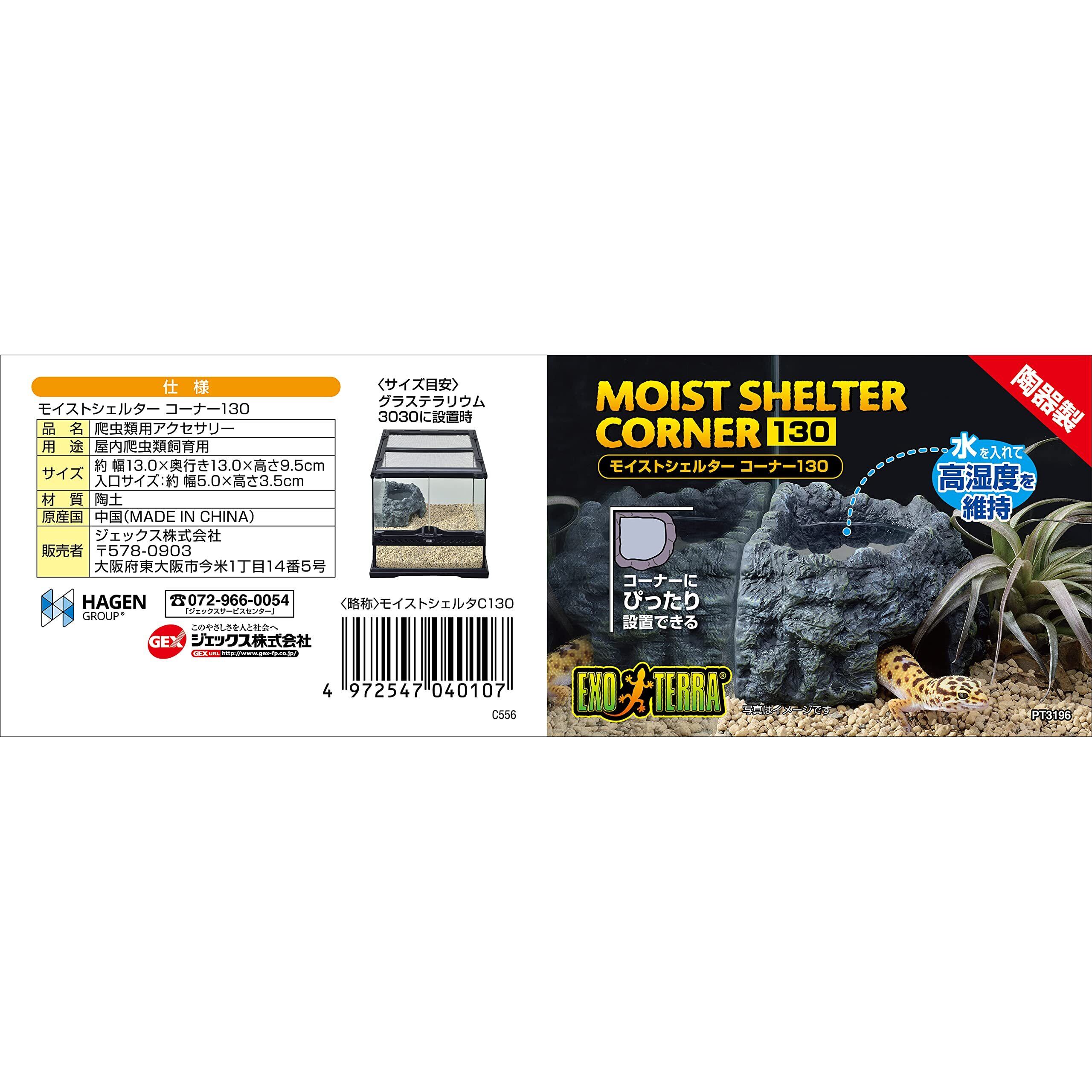 エキゾテラ GEX EXOTERRA モイストシェルター コーナー 130 爬虫類用シェルター 湿度維持 脱皮サポート 陶器製 隠れ家 コーナータイプ たっぷり貯水部 W13×D13×H9.5cm